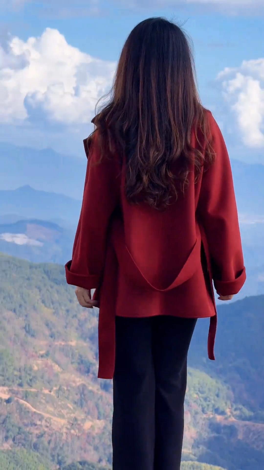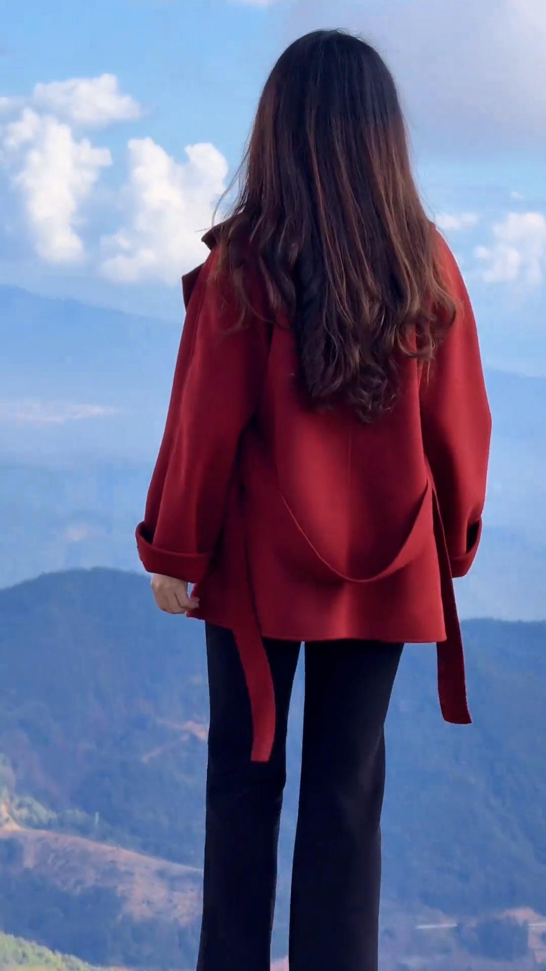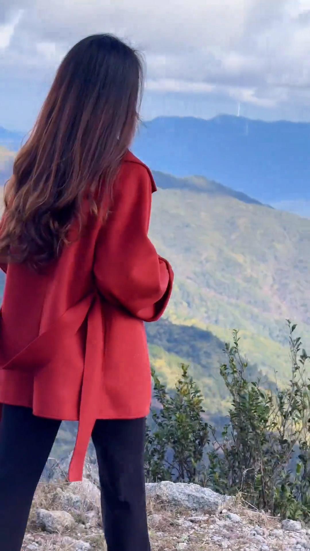 阳光下,山间的少女轻倚石阶,美得像一幅画。她远眺山巅风车,与蓝天白云相伴,静静享
