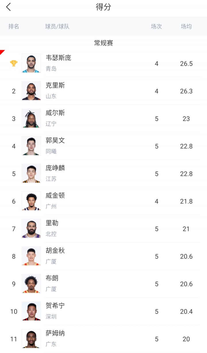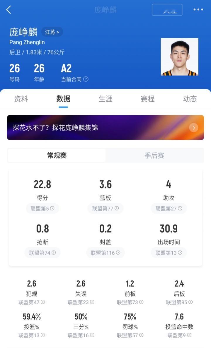 探花水不了!庞峥麟开季至今场均22.8分联盟第5&本土仅次郭昊文