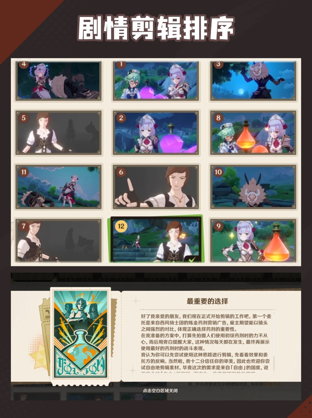5.4限时活动「剪影辑帧」day1攻略![哇R] 根据p2左上角数字排序即可,可得80原石