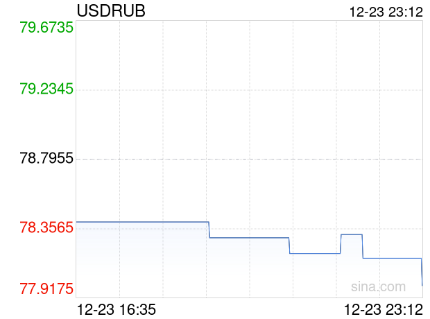 新浪外汇消息2025年12月23日,截至23时12分,外汇市场上美元兑俄罗斯卢布汇率跌破1美元兑换77.9955俄罗斯卢布。跌幅为-1.0153%