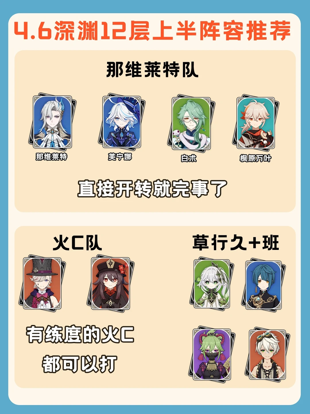 原神4.6新深渊配队推荐,火系起飞!