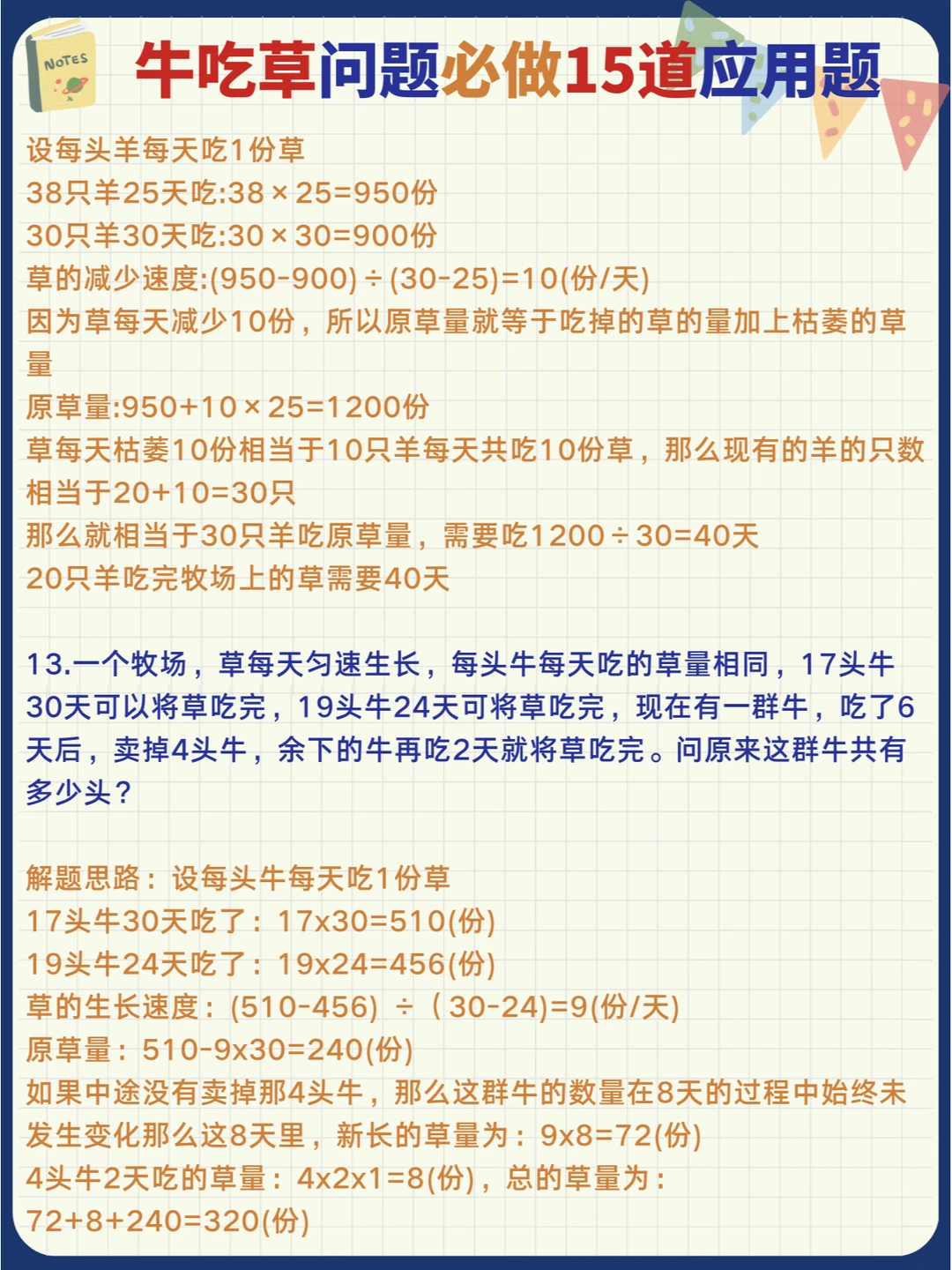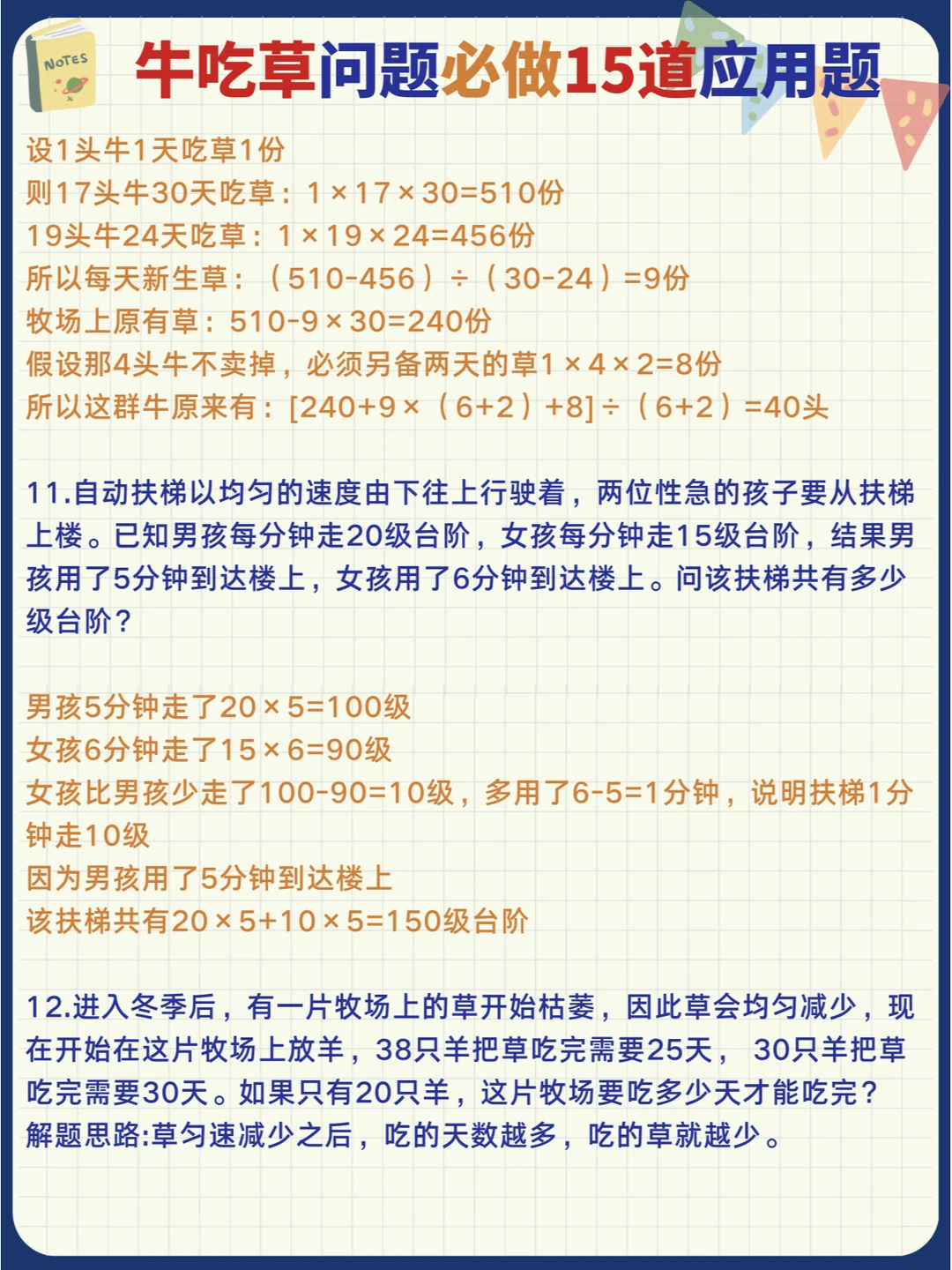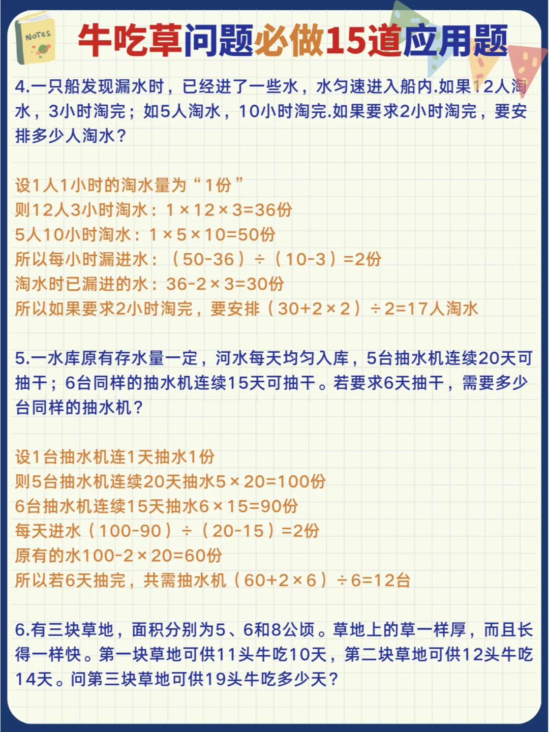 🌈牛吃草问题-小升初复习📝提升必做15道应用题💯