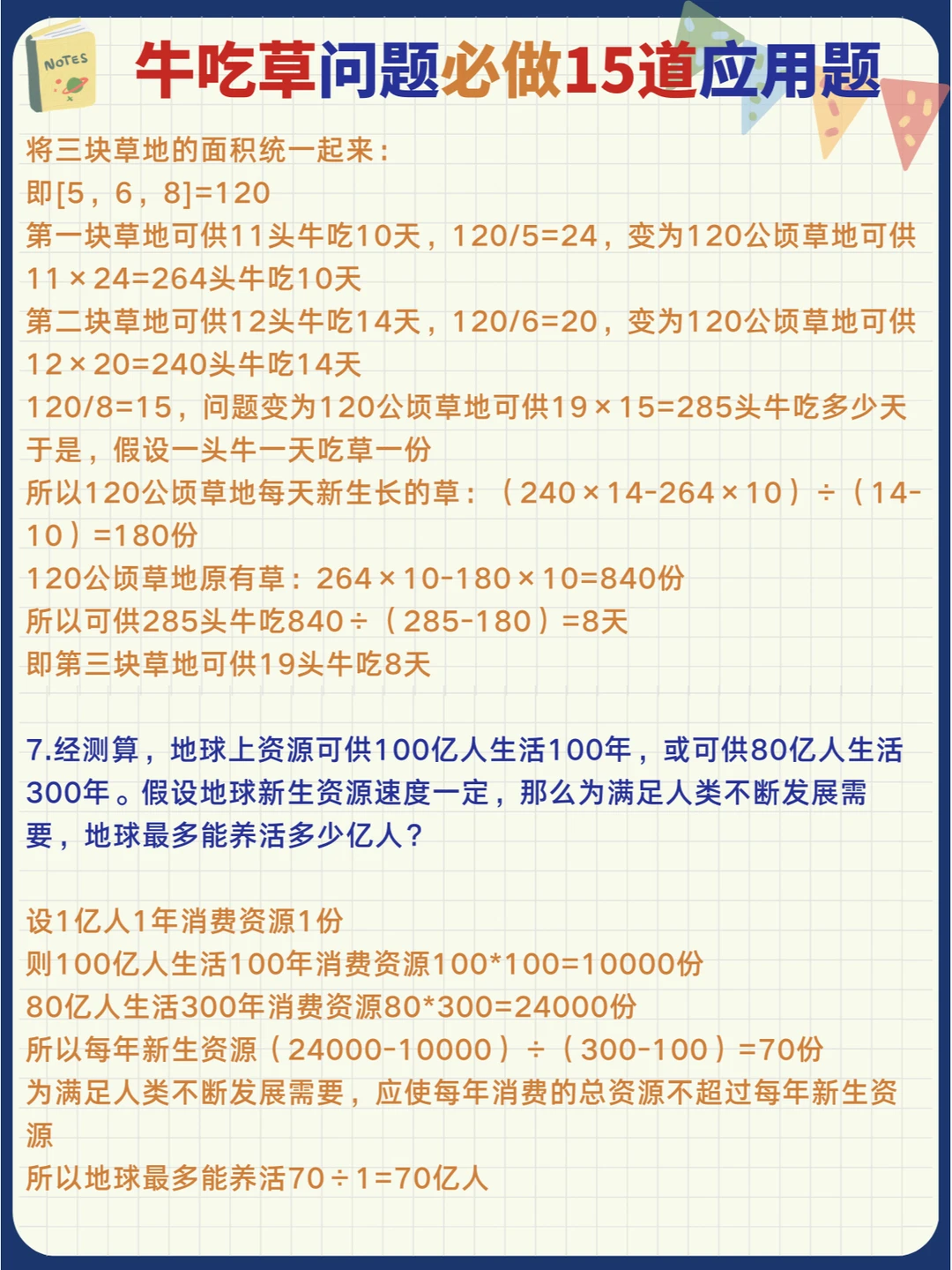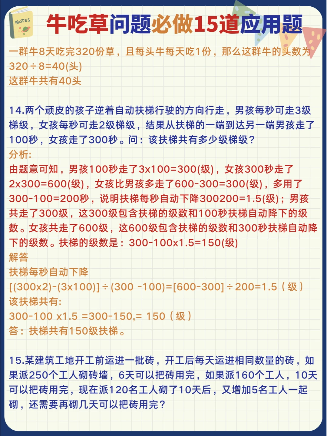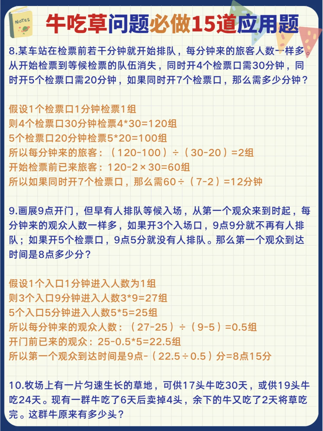 🌈牛吃草问题-小升初复习📝提升必做15道应用题💯