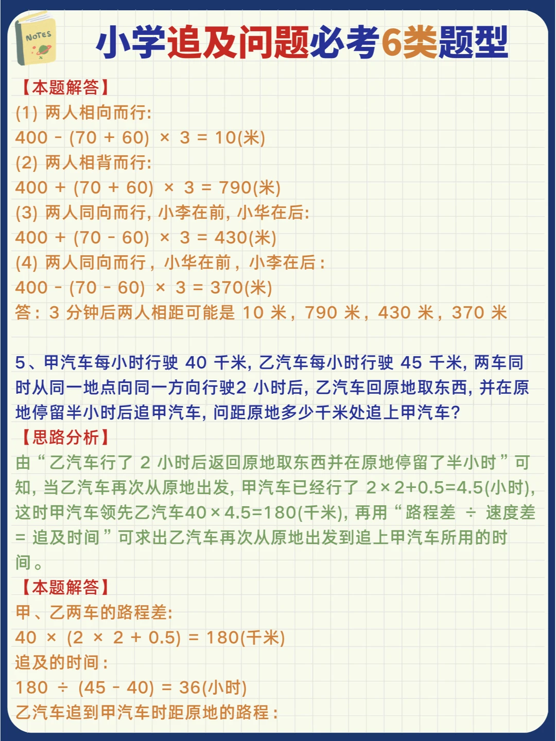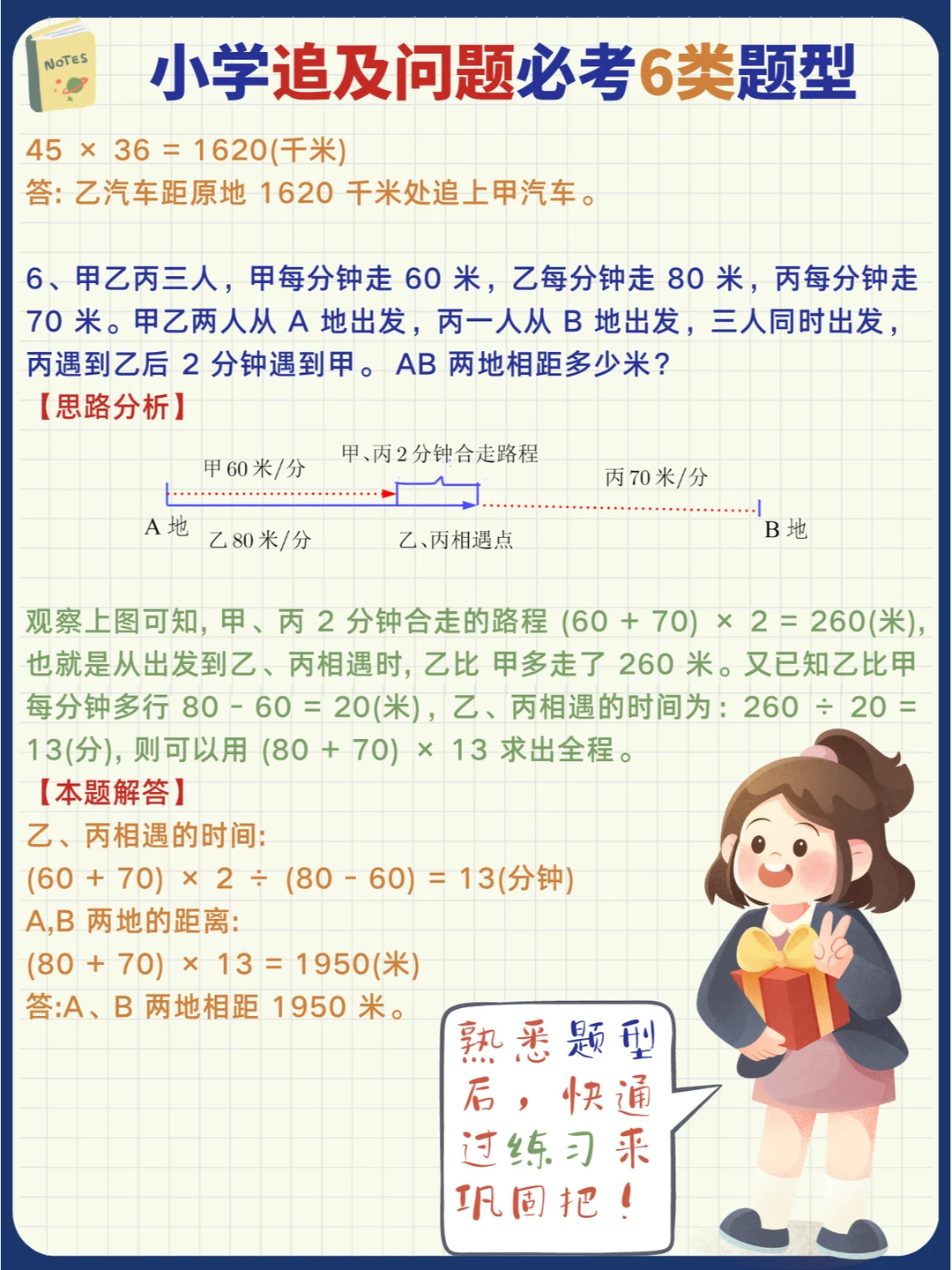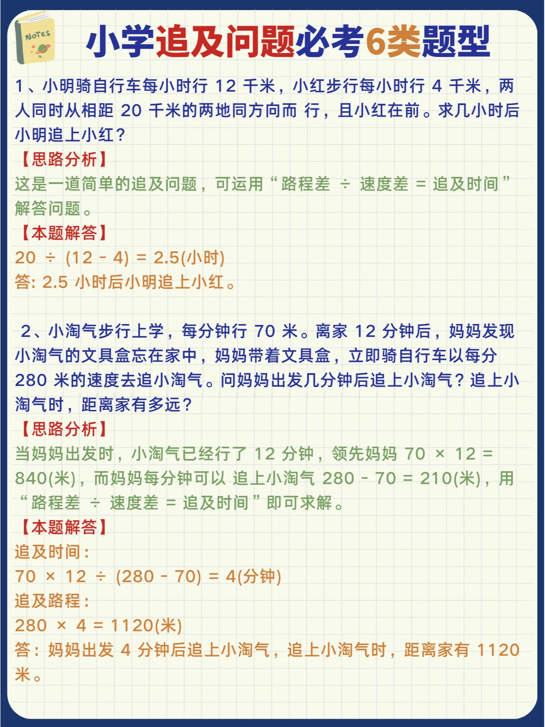 🌈行程中的追及问题,是小学常考的一个知识点,升入高年级进行小升初复习的时候,这是绕不开的一个考点。所以,对于此类问题需要掌握常考的一些题型。