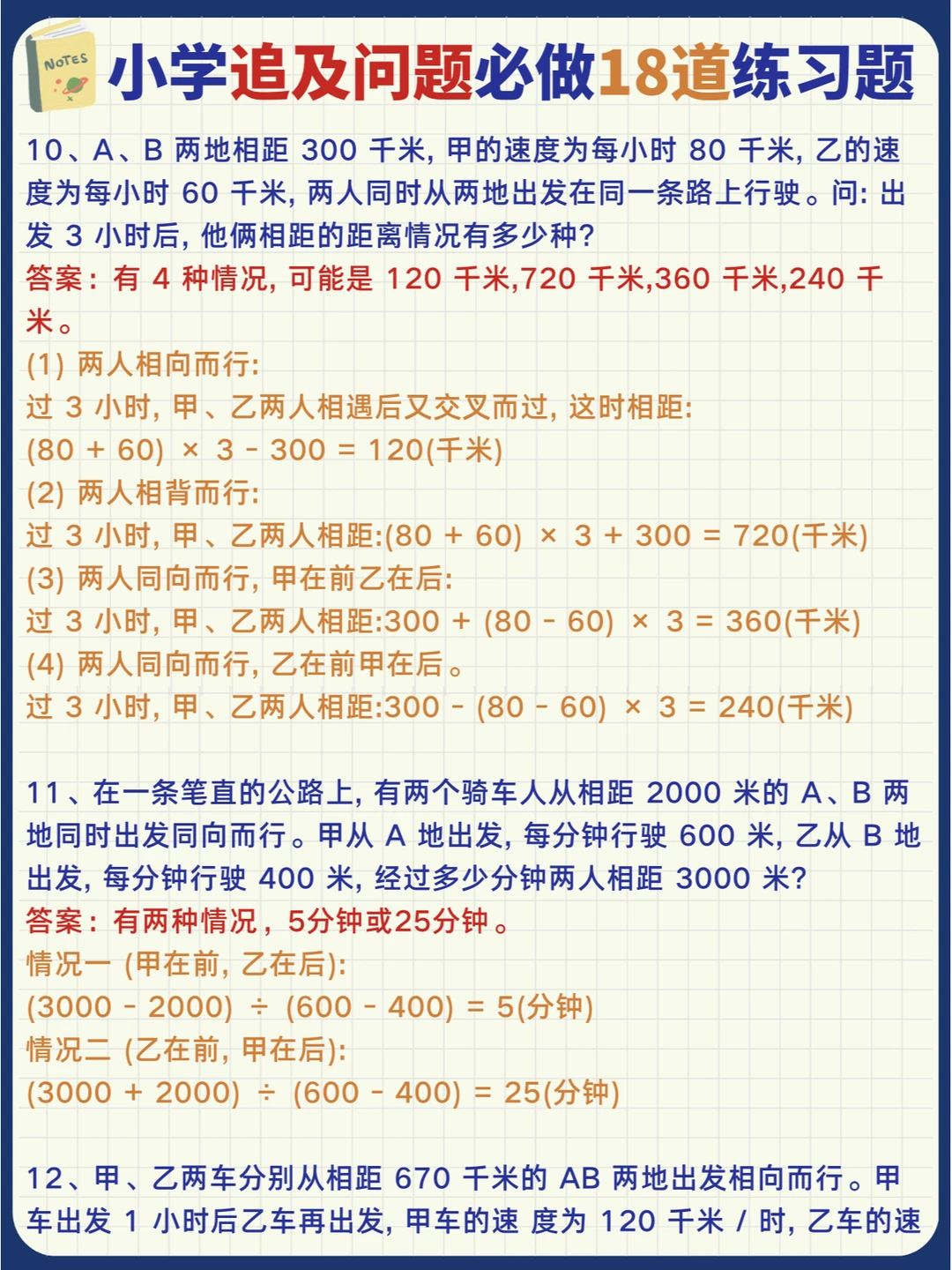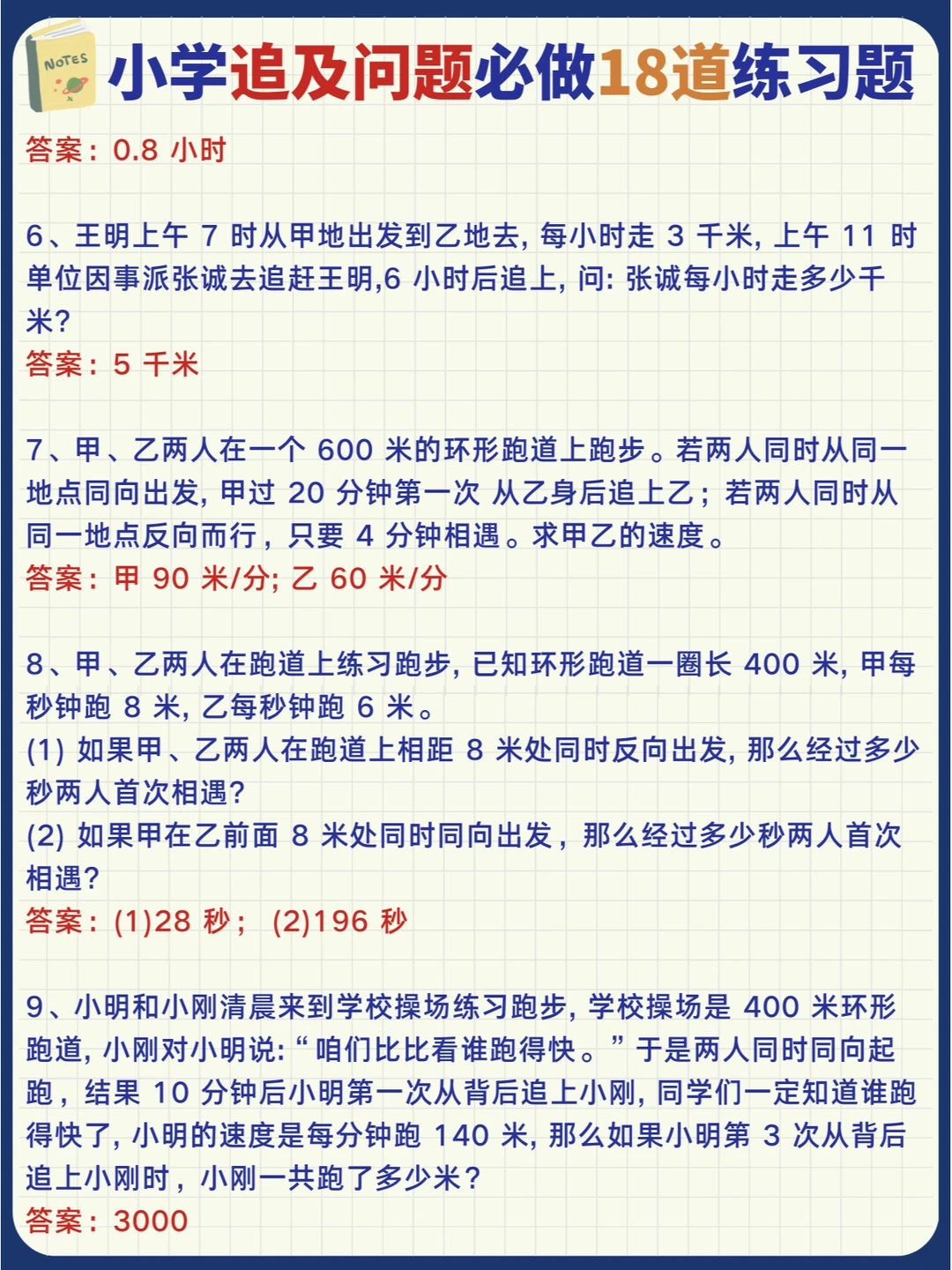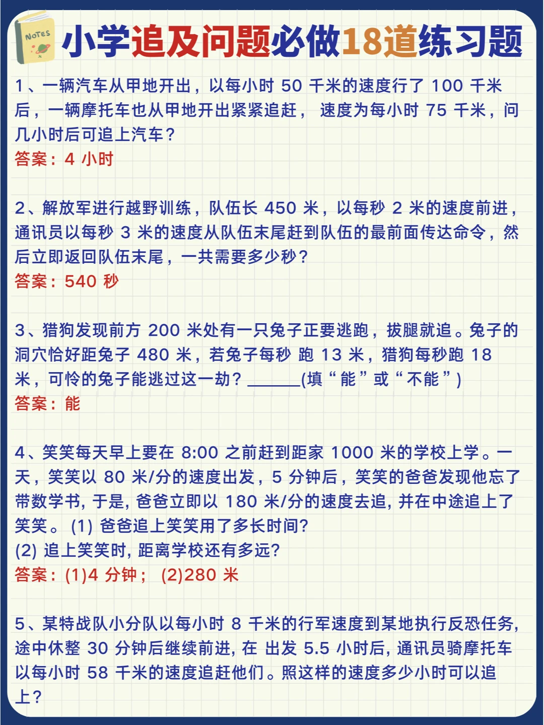 🌈行程中的追及问题,是小学常考的一个知识点,升入高年级进行小升初复习的时候,这是绕不开的一个考点。所以,对于此类问题需要掌握常考的一些题型。