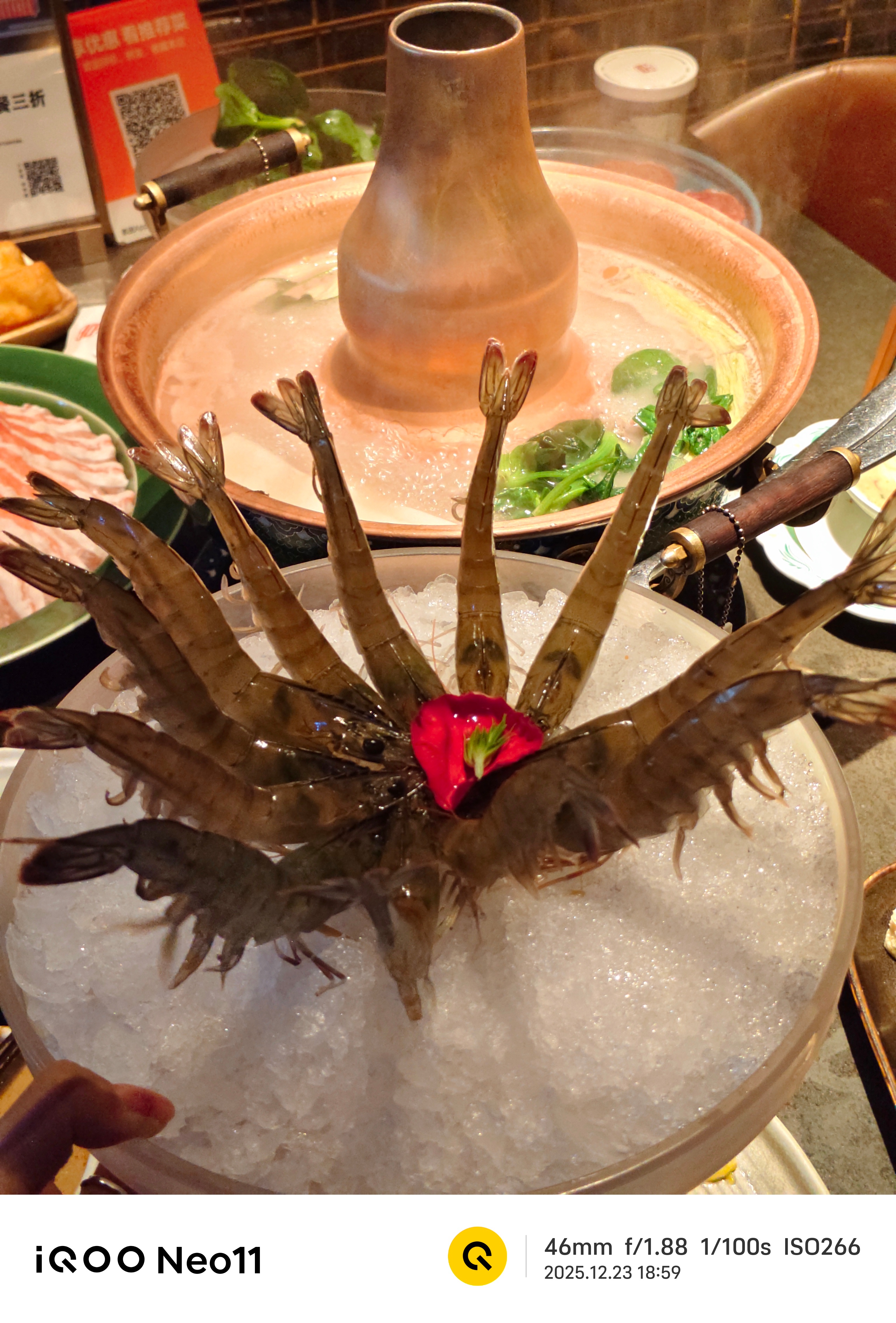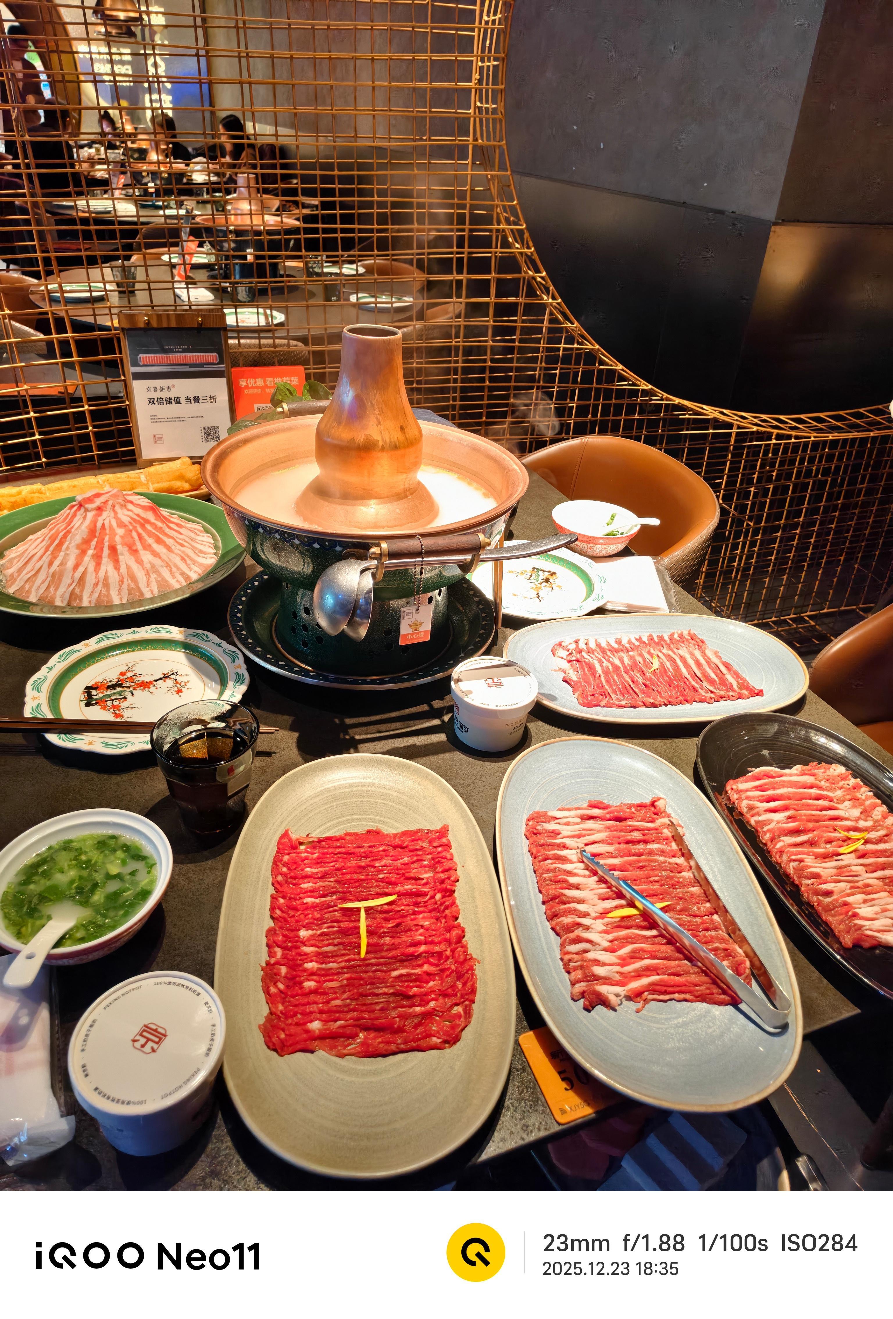 今天跟朋友来探店吃个火锅,朋友选的这家火锅店,肉质真的很新鲜,一问原来食材来源自内蒙古,然后他们还有鲜榨的沙棘汁和有机酸奶真的很新鲜iqooiqoo neo11 虾也是活的,牛羊肉都很新鲜,蔬菜也很新鲜,店长说他们的食材做到了80%的有机 新京韵·新北京涮肉(西溪印象城店)