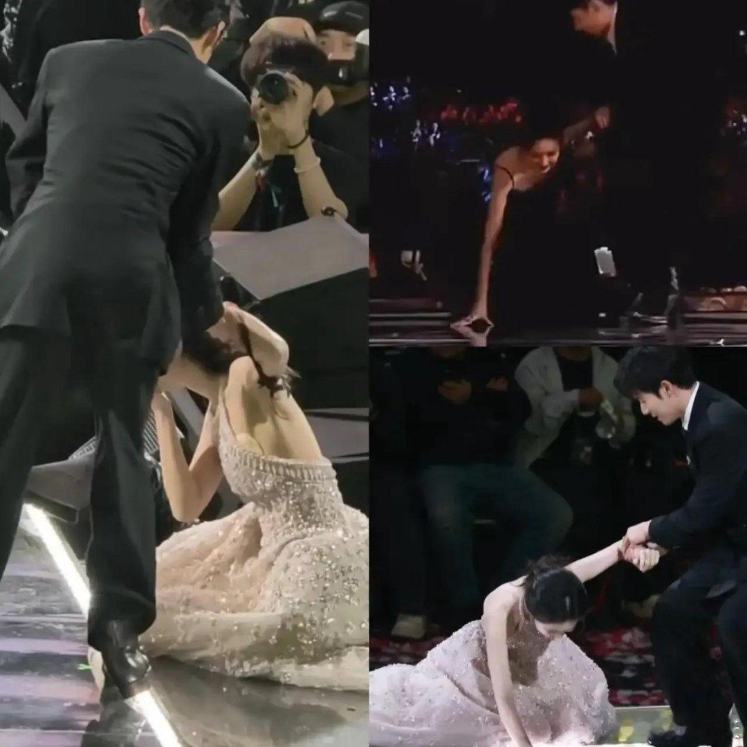 孟子义摔了后,扶着白鹿的丞磊手忙脚乱松开白鹿的手要过去扶孟子义摔了星光大赏内场星