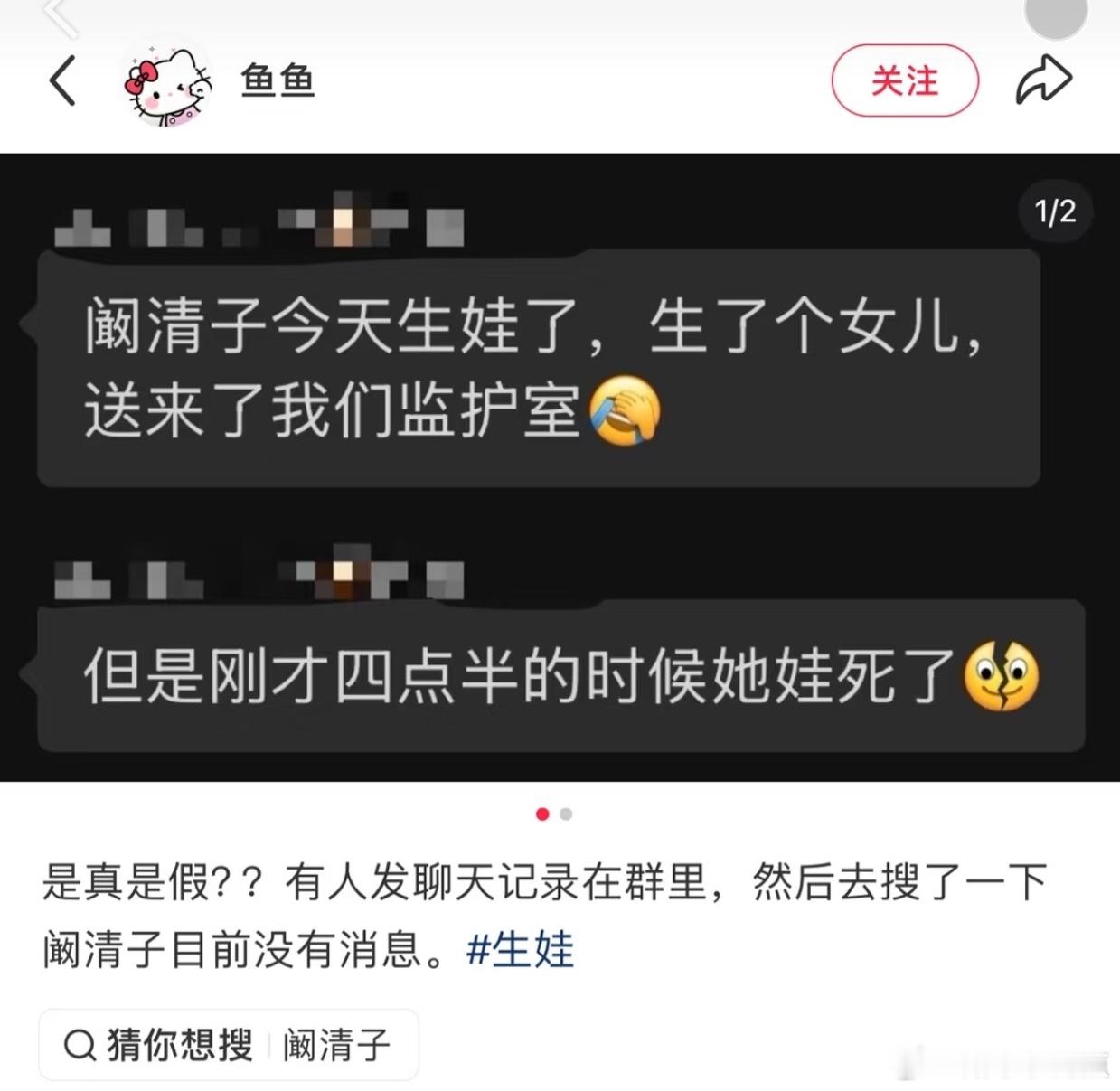 阚清子这个如果是假的,真的得告这个造💊的!!!诅/咒孕妇小孩真是该4️⃣!希望平安无事!