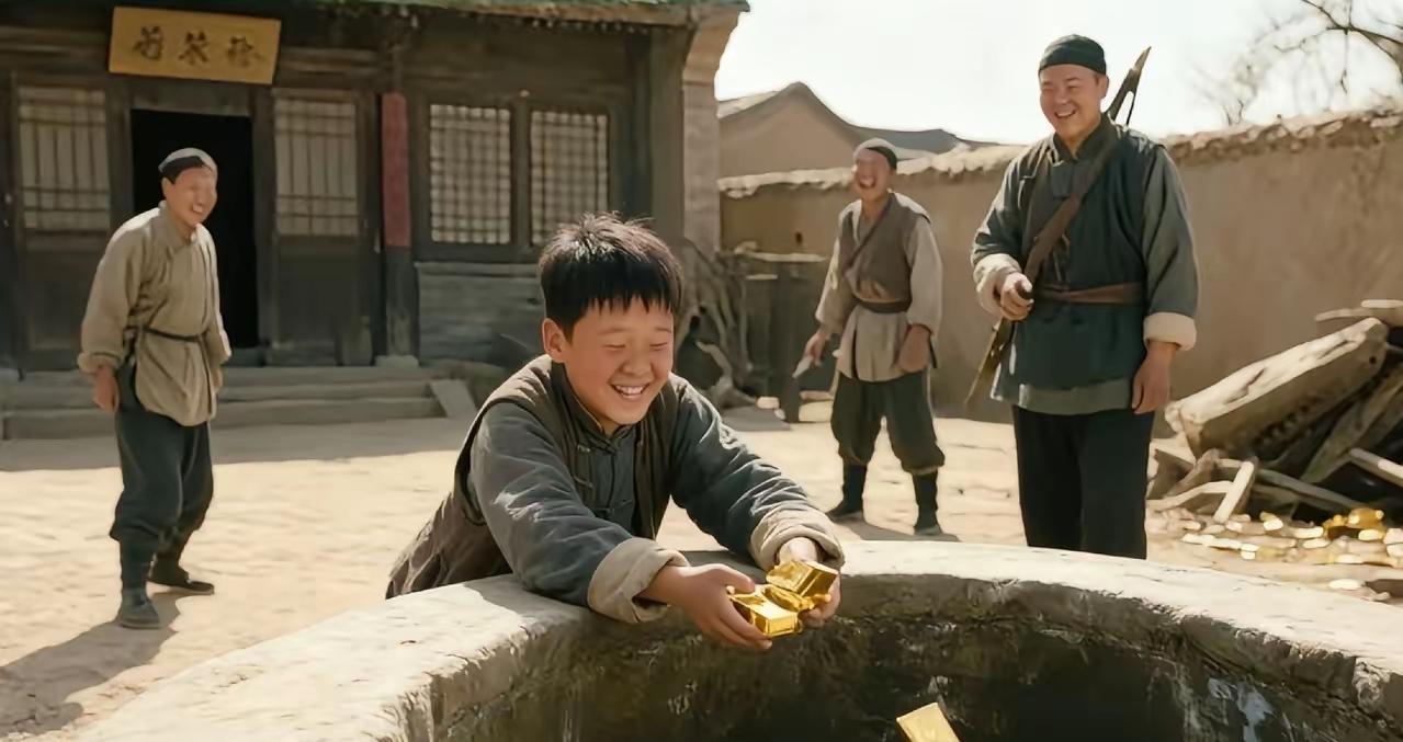 地主家傻儿子每天往井里扔金条,长工们笑他败家,土匪进村那天把家抄空了,傻儿子指着