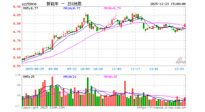 12月23日,新能源车ETF(159806)涨2.06%,成交额2644.60万元。当日份额减少1900.00万份,最新份额为12.33亿份,近20个交易日份额减少4100.00万份。最新资产净值计算值为9.78亿元。