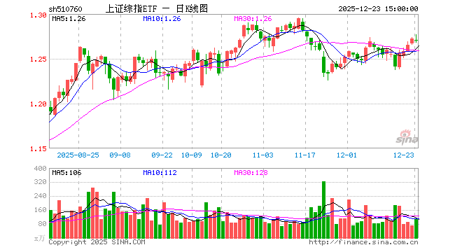 12月23日,上证综指ETF(510760)跌0.08%,成交额1.39亿元。当日份额减少3900.00万份,最新份额为18.15亿份,近20个交易日份额减少1.29亿份。最新资产净值计算值为23.07亿元。