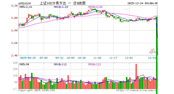 上证50ETF易方达(510100)业绩比较基准为上证50指数收益率,管理人为易方达基金管理有限公司,基金经理为余海燕,成立(2019-09-06)以来回报为38.97%,近一个月回报为2.93%。