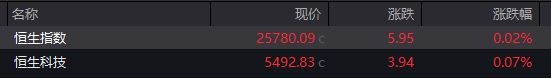 恒生指数开盘涨0.02% 恒生科技指数涨0.07%