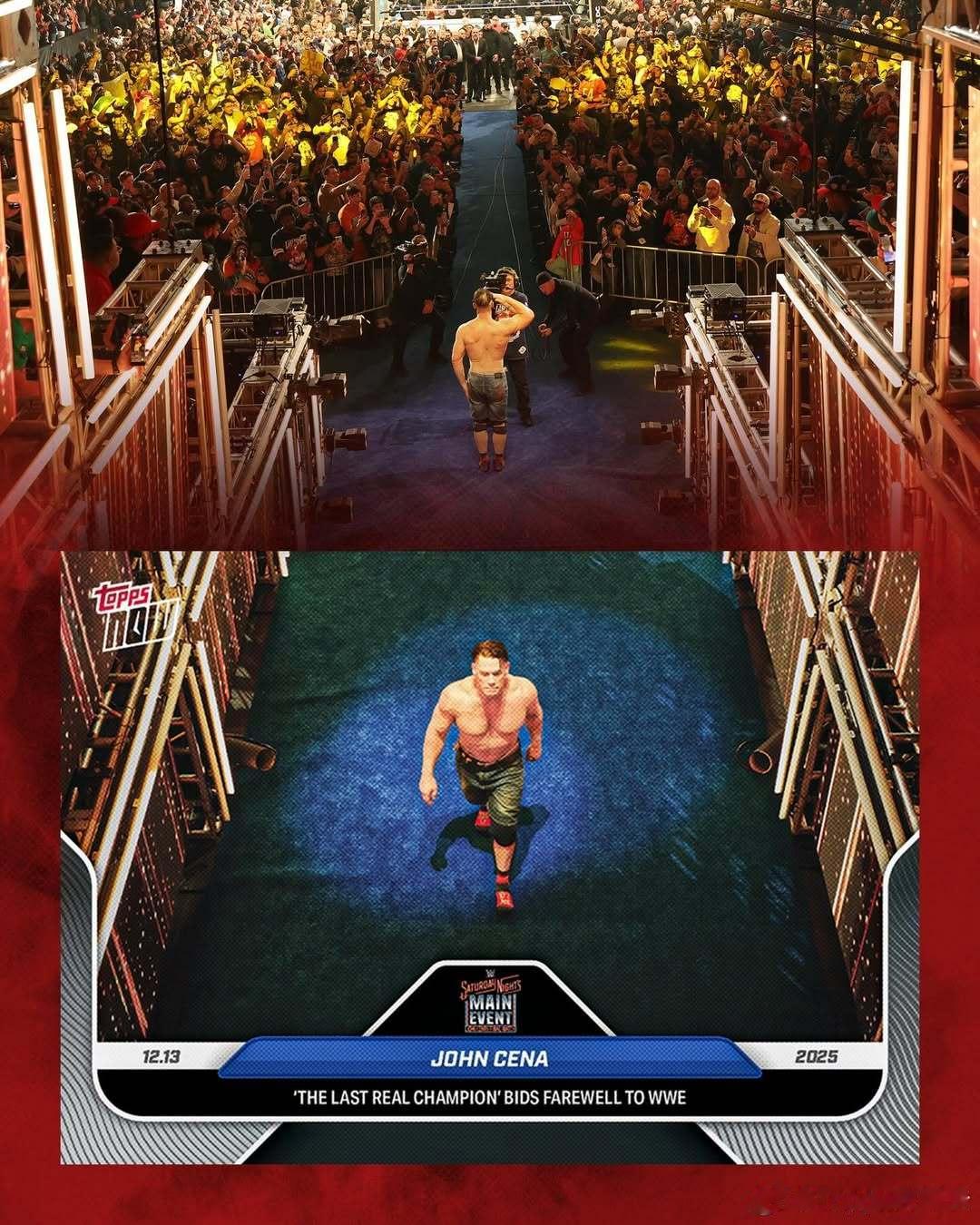 🎭 一个时代,随他转身落幕🥊 23年擂台传奇,约翰·塞纳正式告别WWE📷我们用 Topps Now 卡片,铭记他最后的身影。这不仅是告别,更是对他职业生涯最后的定格。致敬传奇,收藏永远。球星卡 WWE 约翰塞纳退役 Topps