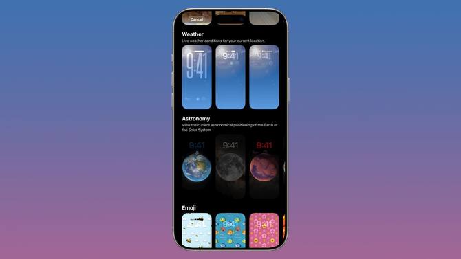 壁纸的实际内容并未发生变化,唯一的区别在于苹果在天气分类下新增了几款预制壁纸。一如既往,天气类壁纸会实时显示你当前所在位置的天气状况,而天文类壁纸则呈现地球或太阳系当前的天体运行方位。
