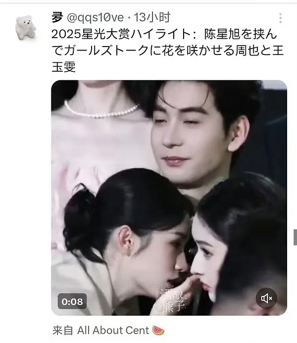 星光大赏最火的名场面,陈星旭、周也、王玉雯的同框名场面,不仅火出圈了,而且在外网也刷屏式爆火,甚至是各种角度都有……