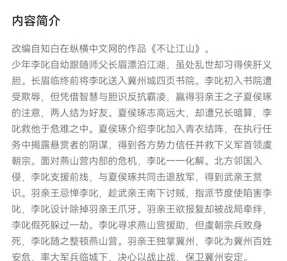 网传杨洋周洁琼合作不让江山网传不让江山2月开机 网传古装剧《不让江山》2月底开机