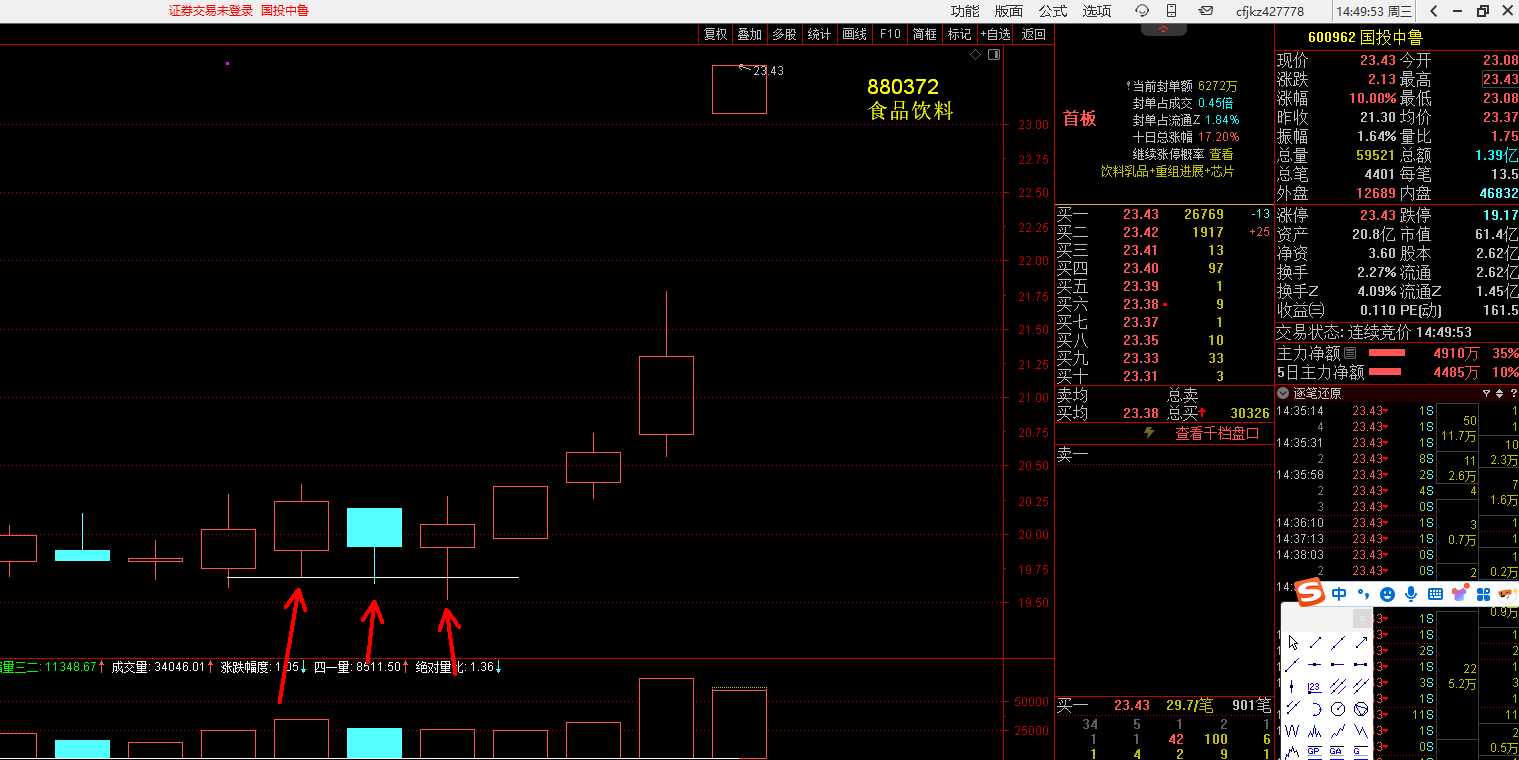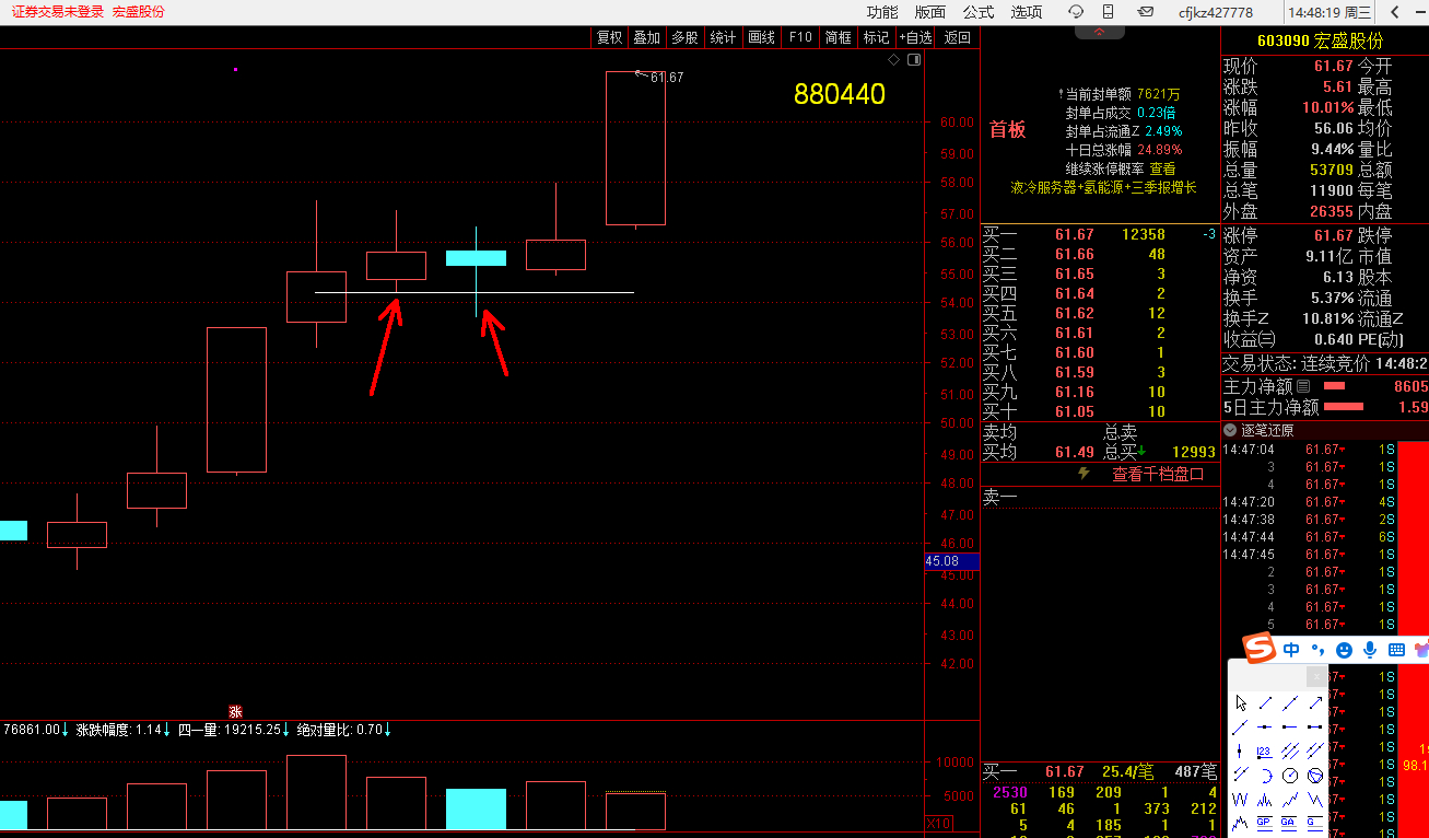 与今天上证50这种跌破最近一个阳的虚底,当天拉回的情况,次日的走势就非常非常的关键,图1是今天现在的上证50,后面的案例全部都是类似,但次日爆发的近期牛股案例,类似案例很多,这里关键是明天往哪个方向去确认,对于指数,则需要结合证券走势和贪恐指数一起用。