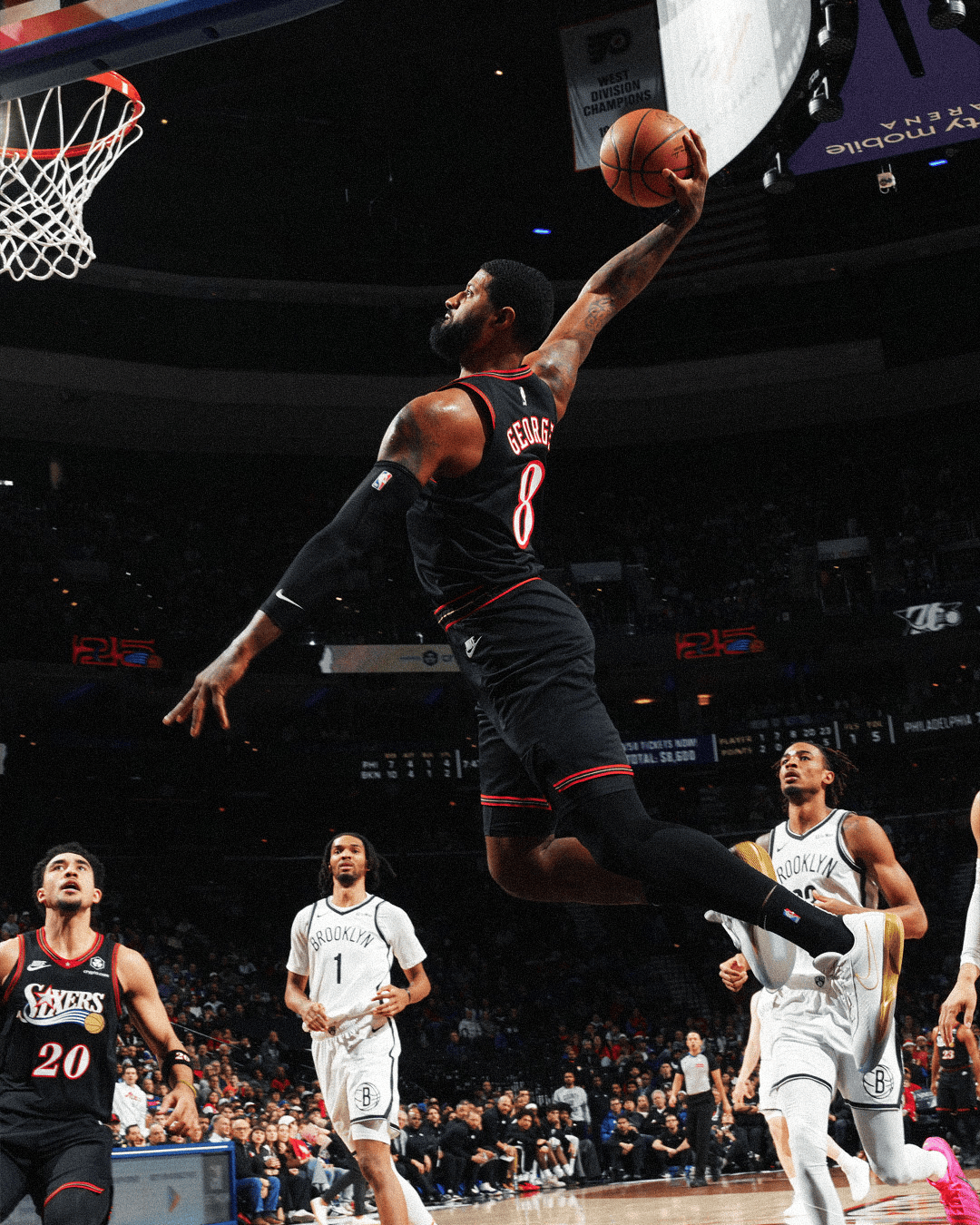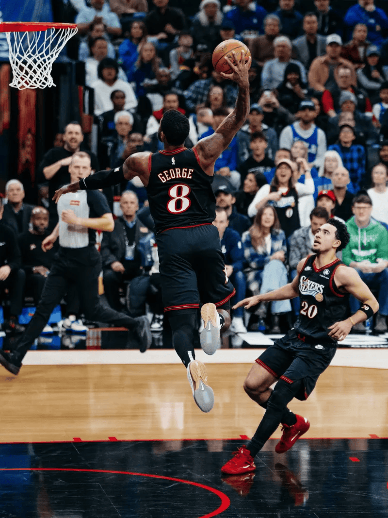 NBA官方晒出乔治劈扣瞬间:来自保罗-乔治的完美扣篮。
