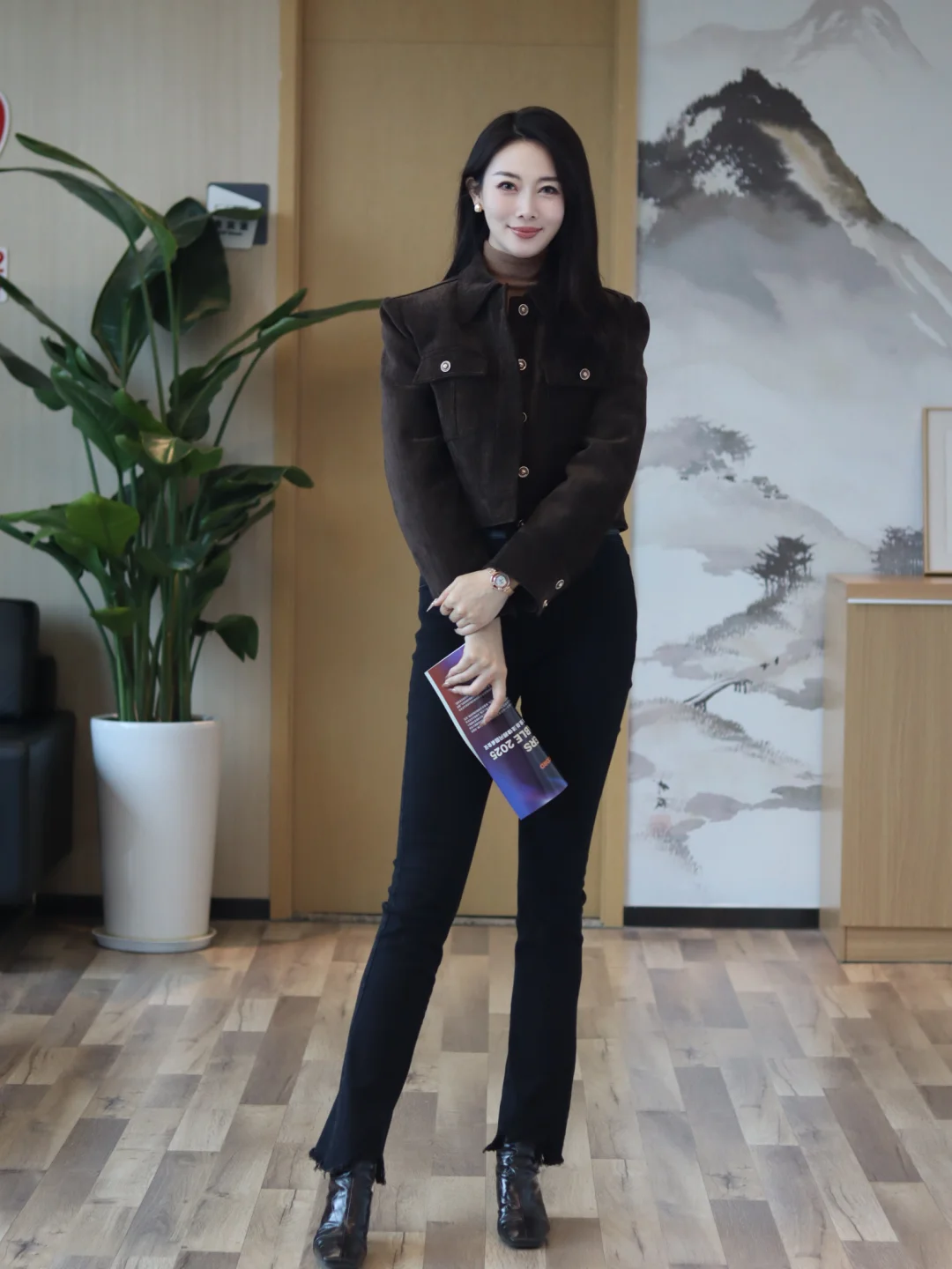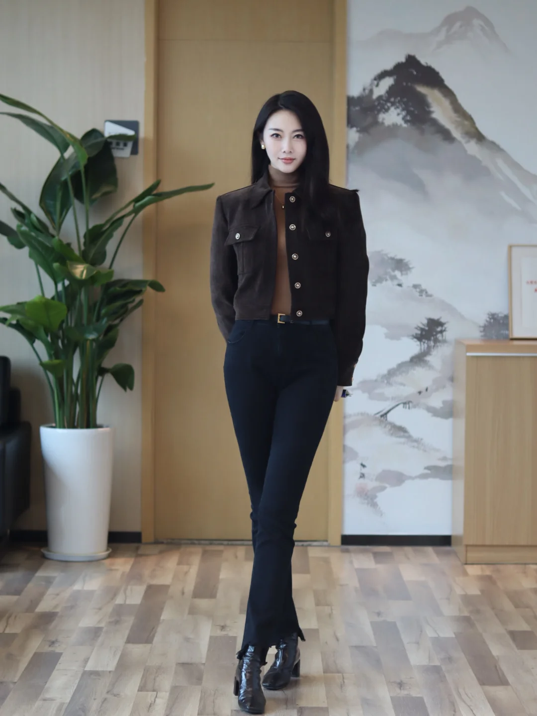 ⭐今天同事都问我冷不冷,我说我这个是看着单薄实际很暖啦~不露腿的美拉德色系可太适合秋冬啦,看着就很舒适温暖~ ⭐显腿长的心机穿法就是搭配短款外套啦[偷笑R]。搭配金属表带的简约手表和外套纽扣呼应,秋冬职场这么穿,专业与美感两不误。