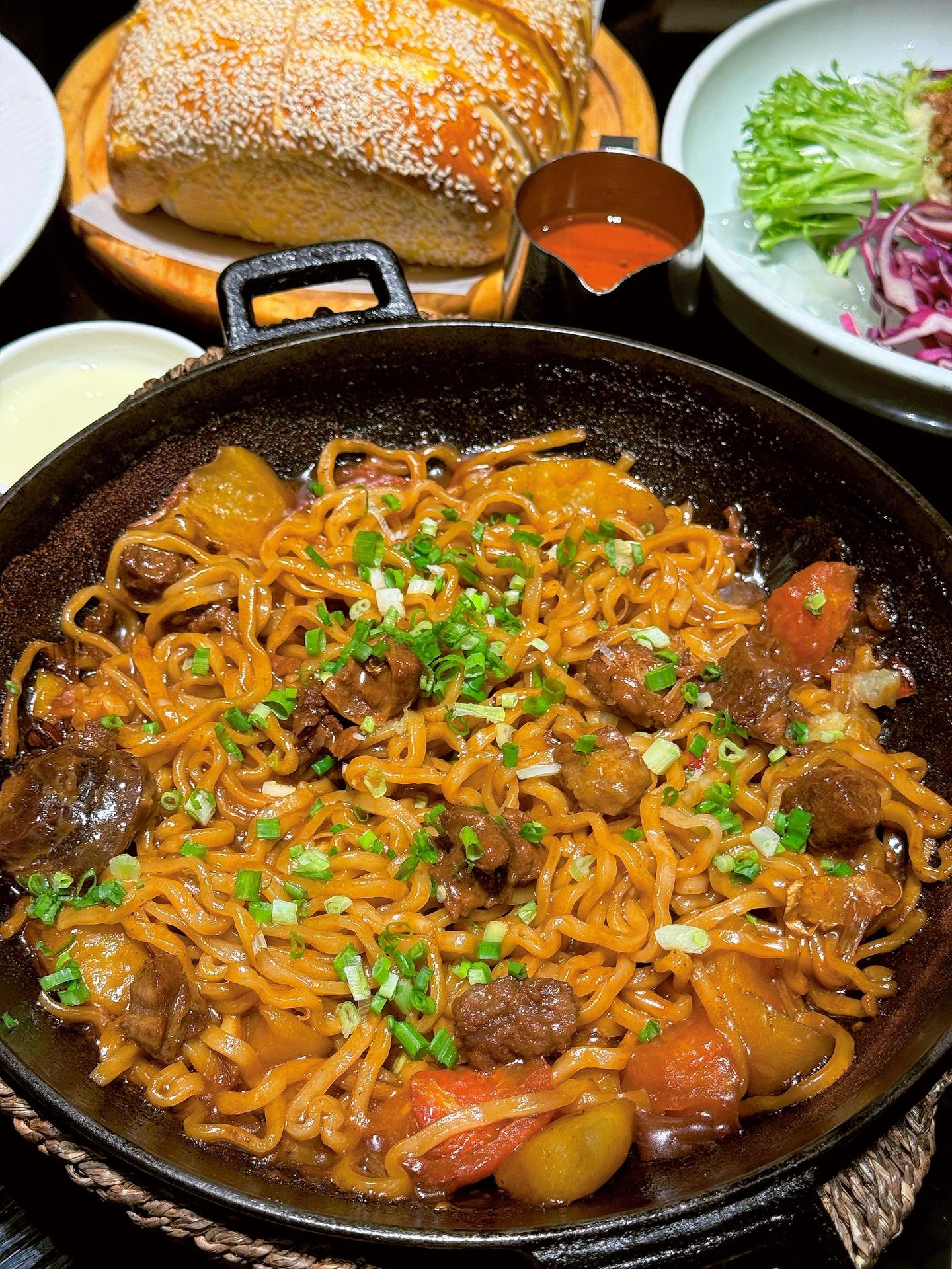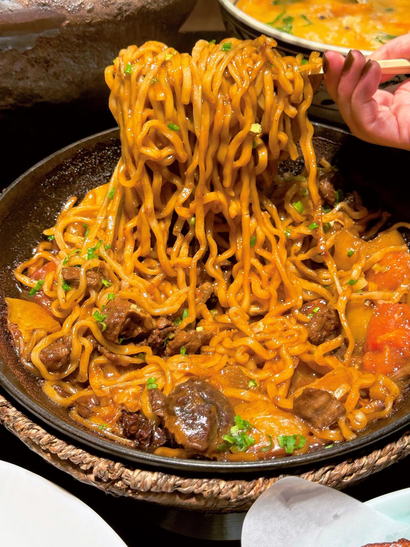 筋头巴脑炖得烂乎乎的,面条裹满了浓浓的汤汁,嗦一口香到跺脚,碳水星人狂喜!