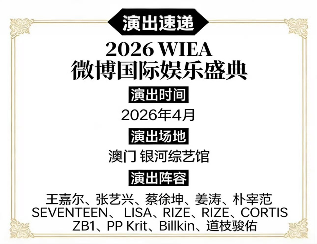 王嘉尔、张艺兴、姜涛、LISA、SEVENTEEN、RIIZE、ZB1、CORTIS、道枝骏佑、PP Krit、Billkin