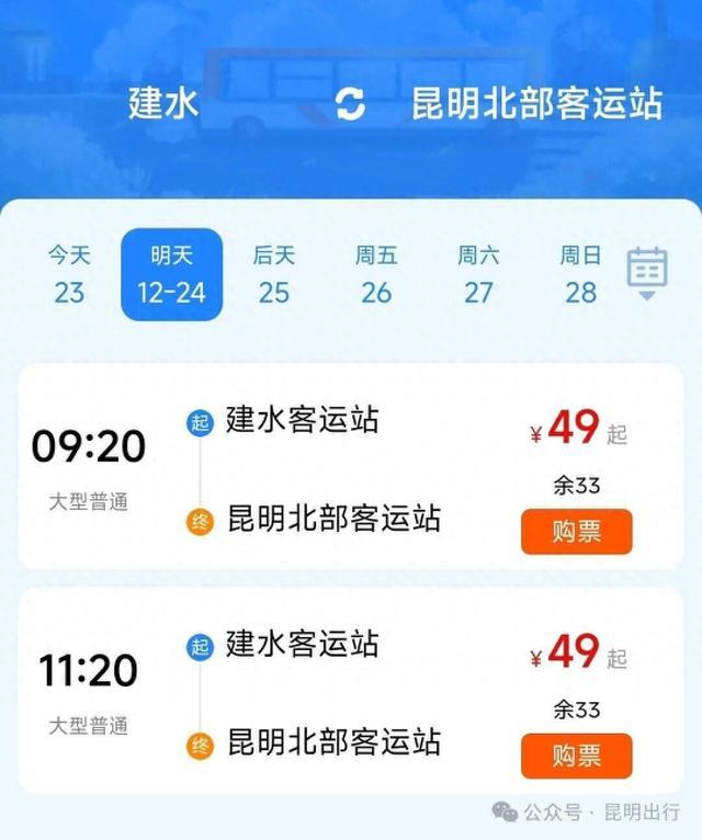 昆明市北部汽车客运站于12月22日开通昆明至建水的客运新班线,发车时间:每天9:00、10:40、13:30、16:00;票价49元/人。途经曲江收费站,可换乘多地......