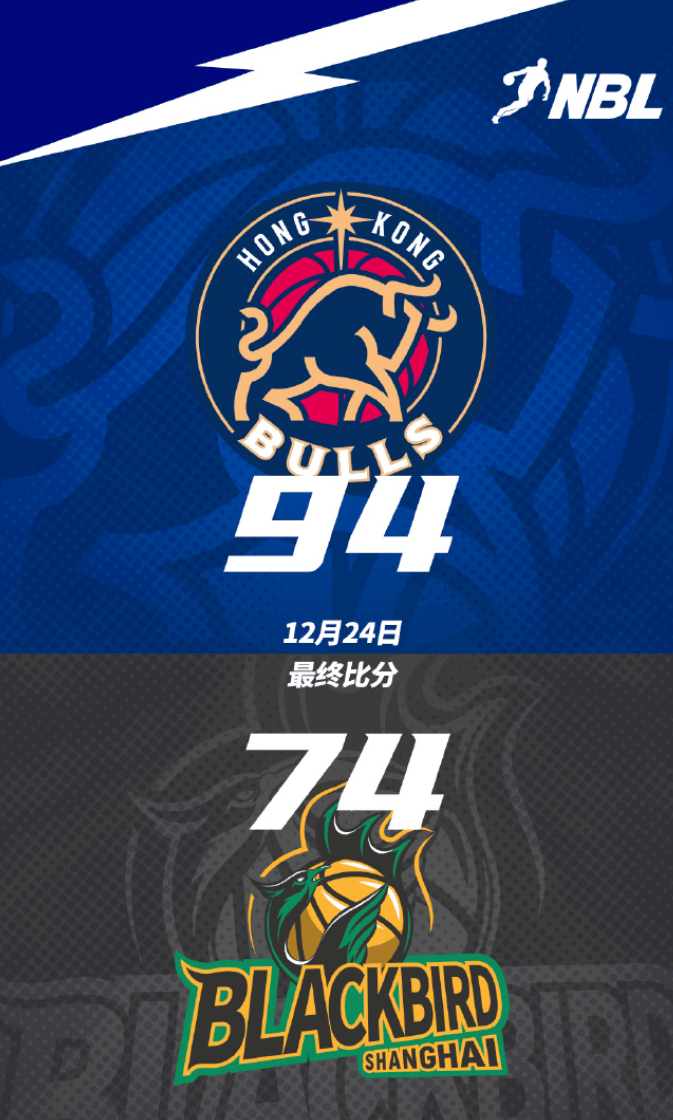 虎扑12月24日讯今日NBL常规赛:香港金牛94-74战胜上海玄鸟。