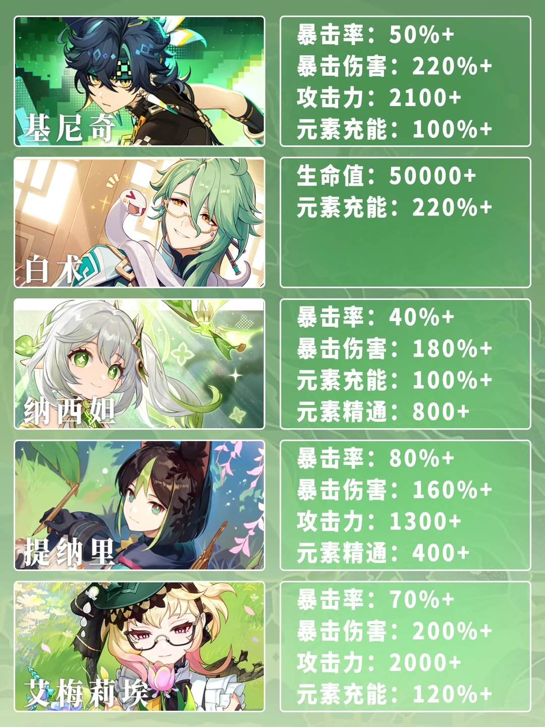 截止5.7版本的草系角色面板推荐[哇R] 攻略看这一篇就够啦! 解决你的一切草系角色养成烦恼~