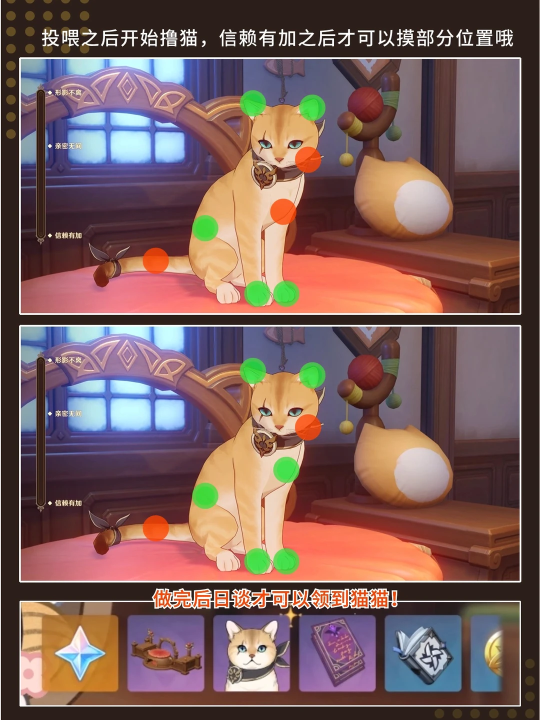 云撸猫活动DAY5 今日摆设21231 撸猫:双耳双前爪后爪 亲密后+胸口 做完后日谈可以领刀疤猫[哇R] 还可以找到彩蛋奥兹和昏倒骑士