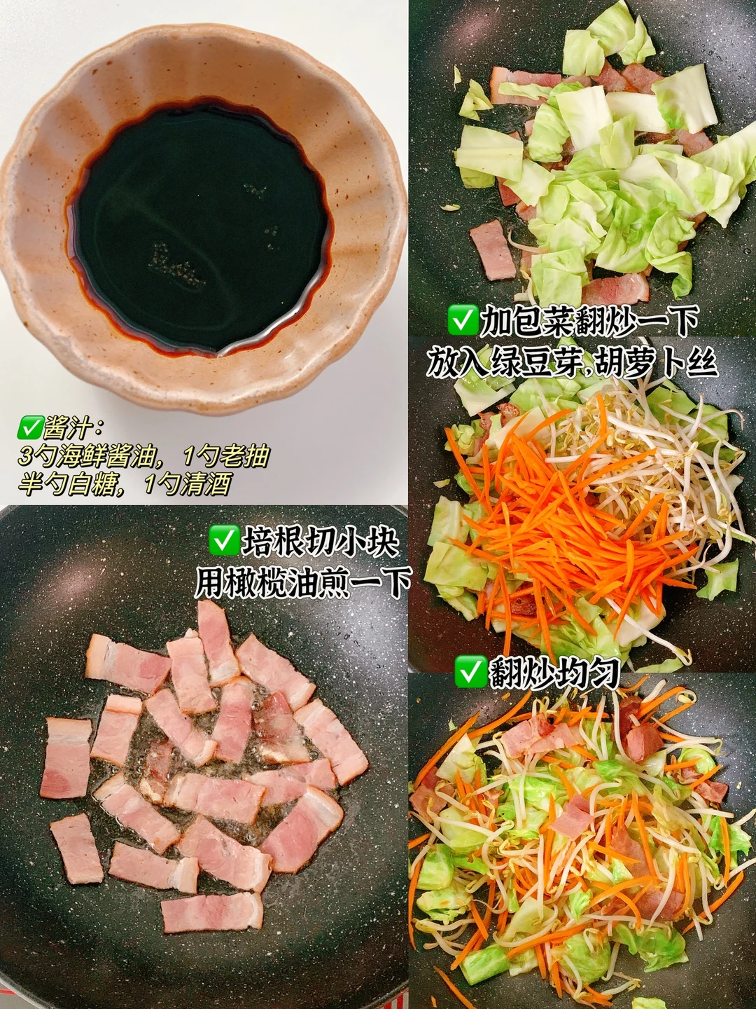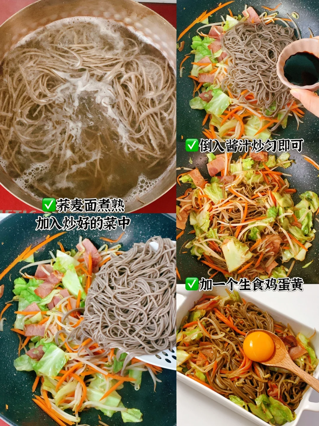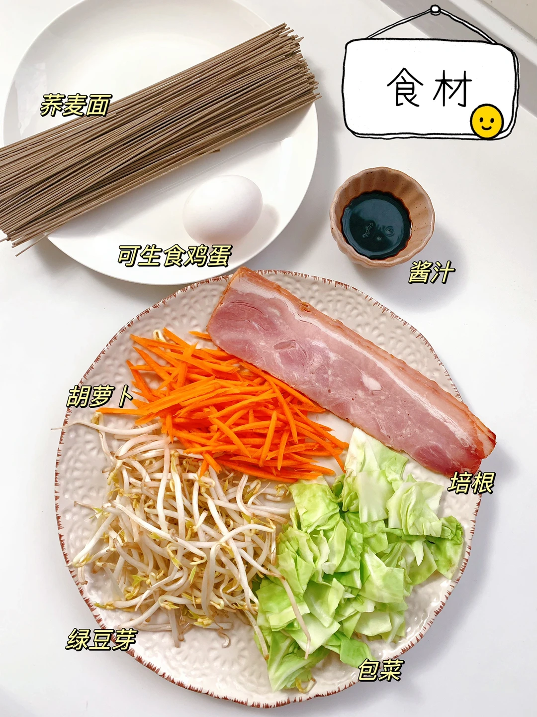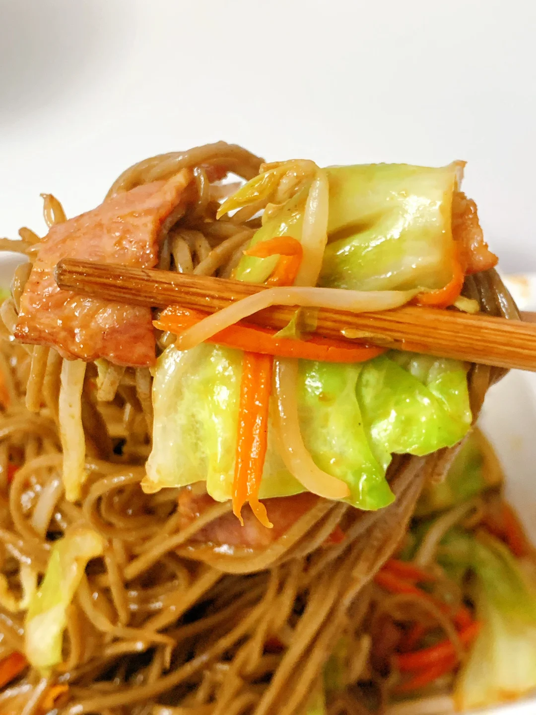 主料:荞麦面,包菜,胡萝卜,培根,绿豆芽
