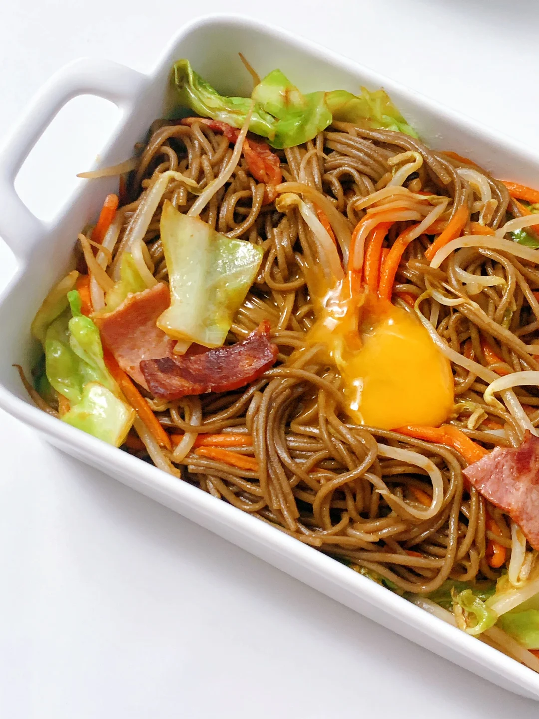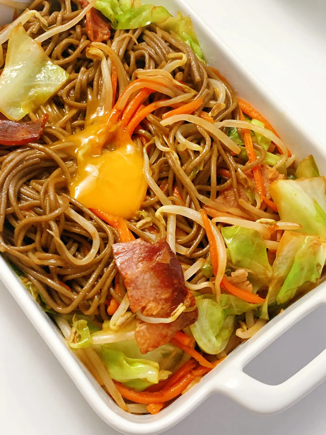 超级简单手残党也会的炒面,非常适合一人食早中晚餐,标配包菜,胡萝卜,再来一颗生食鸡蛋黄,味道绝了~~