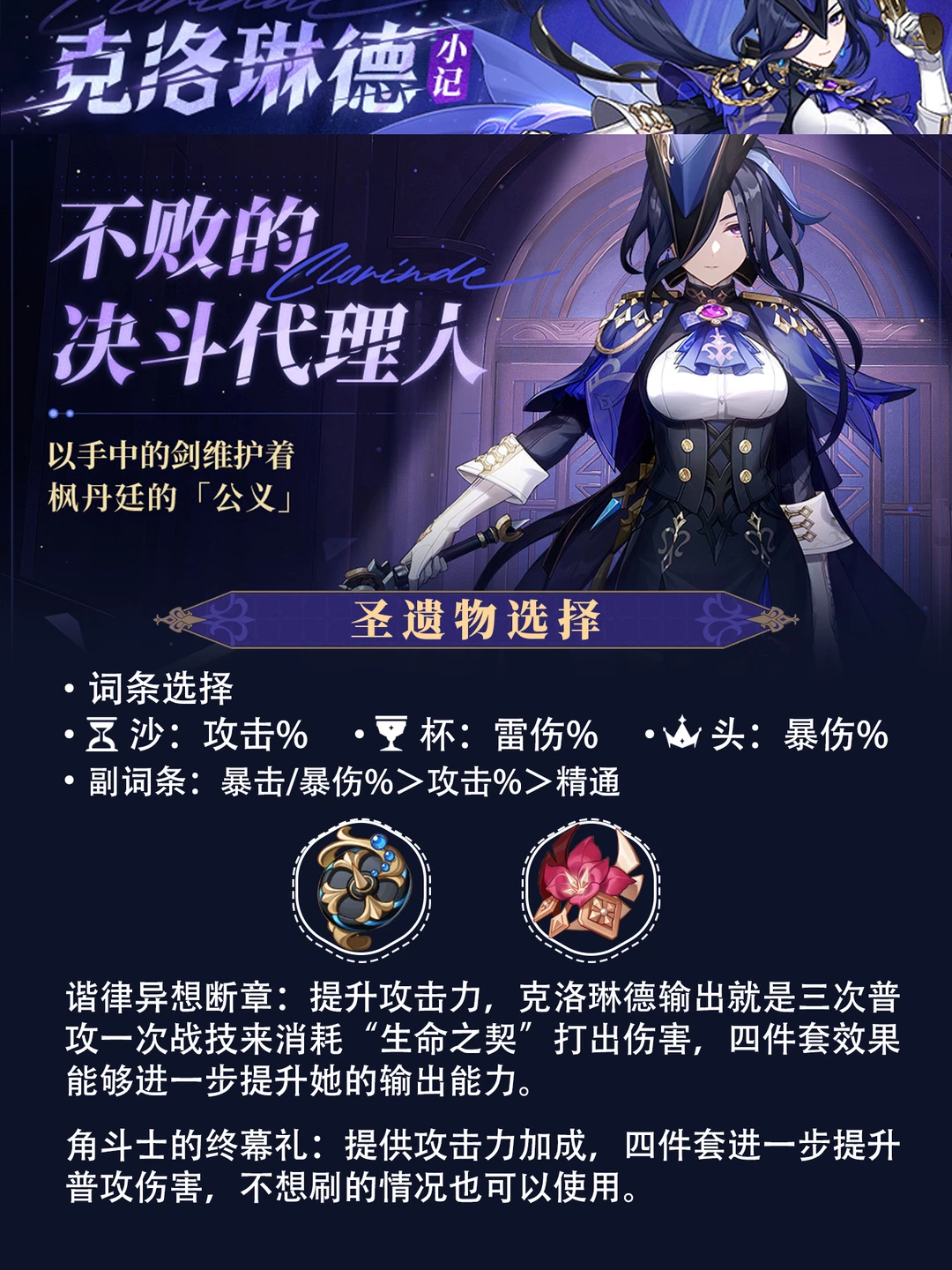枫丹决斗代理人⭐克洛琳德攻略! 拥有“生命之契”机制,适合打「激化」或「超载」 请看她的详细攻略吧!