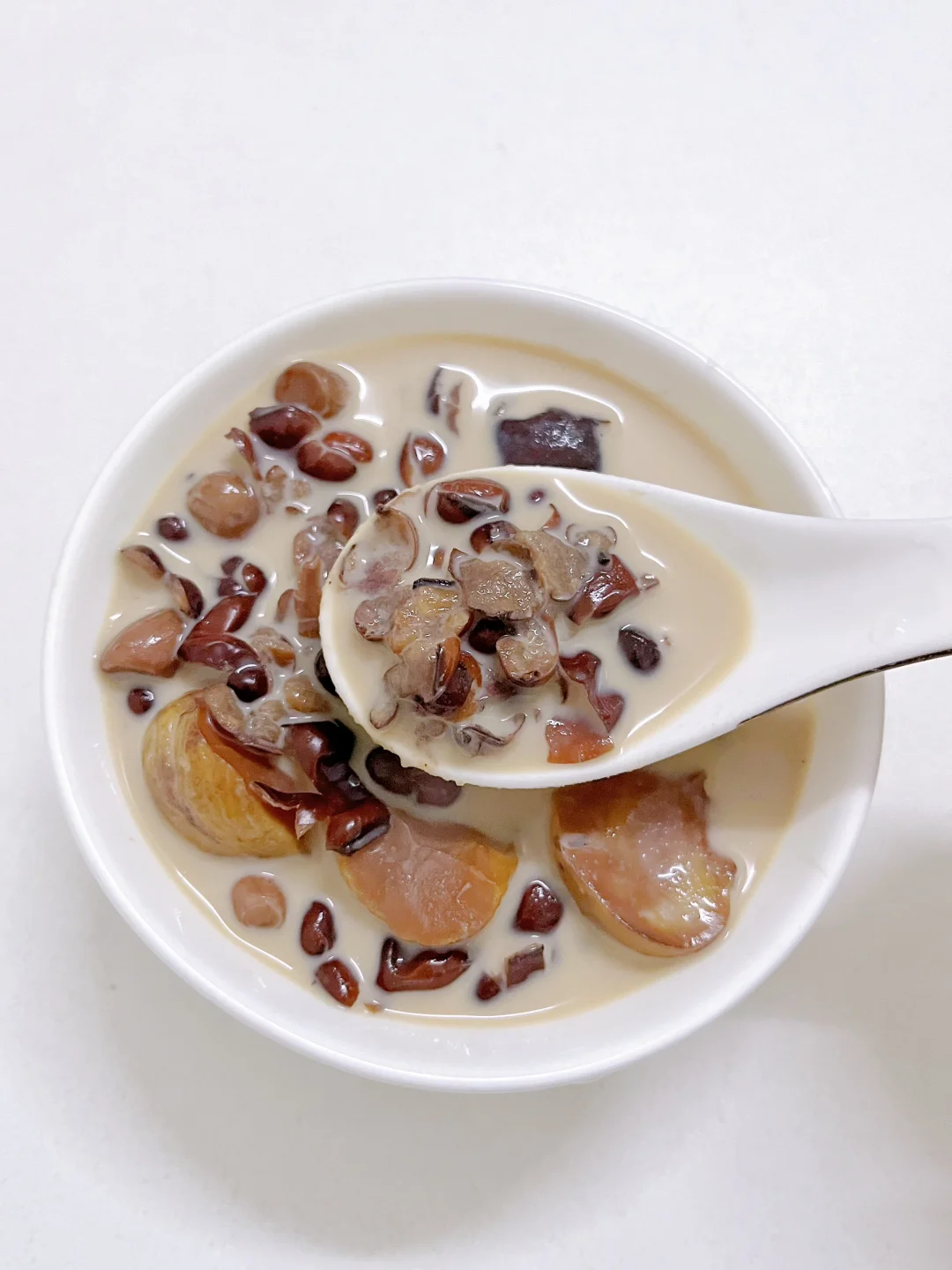 这个甜汤真的绝了!板栗粉糯,红豆沙沙的,牛奶让汤更香浓,喝完手脚都暖了~秋冬养生就靠它啦,姐妹们快试试!