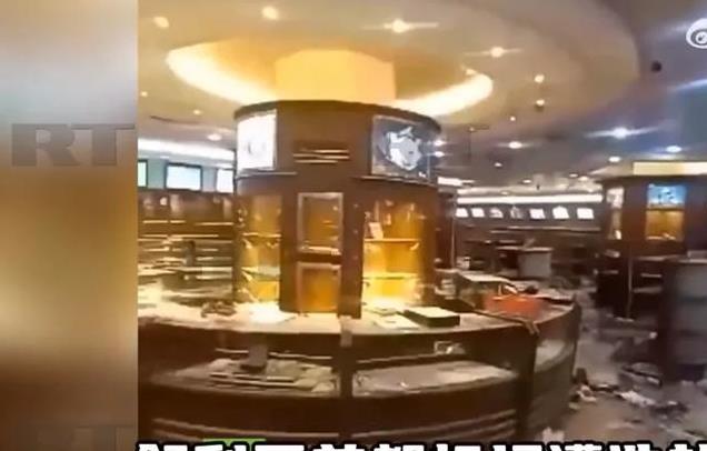 根据曝光的视频来看,门是被硬生生的撬开的,里边免税店以及各种商店全部被抢光,放眼望去,一片狼藉