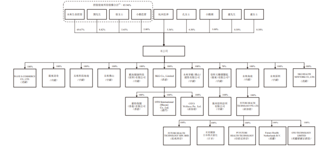 截至最后实际可行日期,刘杰、徐思英、小鹅芭蕾及未来生命投资根据各方订立的一致行动安排有权在未来健康股东会上控制或行使约85.94%投票权,为公司控股股东。
