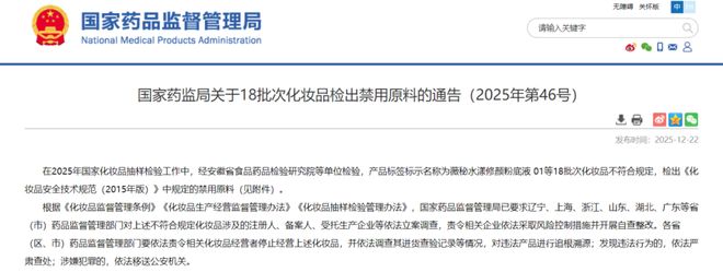 18批次不合格化妆品通告