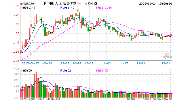 12月24日,科创板人工智能ETF(588930)涨1.43%,成交额9130.86万元。当日份额减少1400.00万份,最新份额为11.51亿份,近20个交易日份额减少1.12亿份。最新资产净值计算值为17.15亿元。