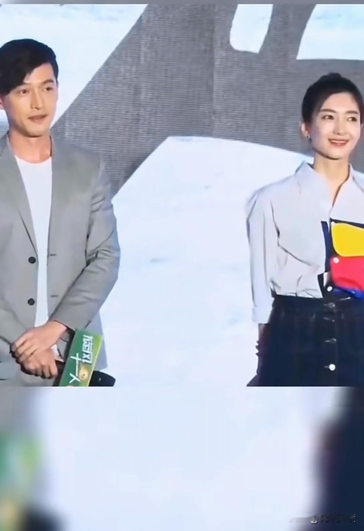 男帅女靓, 胡歌与江疏影两个人好配啊, 明显看上去江疏影有些余情未了, 可惜最终还是分道扬镳了。