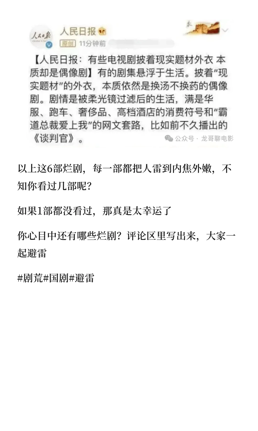 央媒点名批评的6部烂剧,实在侮辱智商,1部