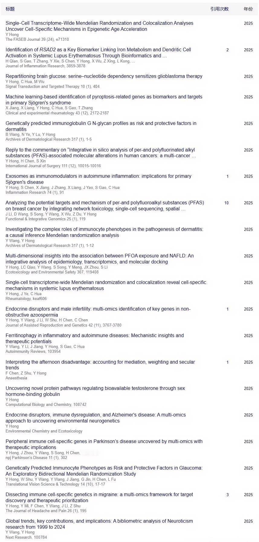 谁家公子又出来作妖?一年内温州医科大学一名大四本科生洪同学发表SCI论文40多篇,其中34篇为洪同学独立一作,12篇担任通讯作者,且多数发表在中科院1区或2区期刊,甚至一些影响因子达10以上的高分期刊。 坚持一年365天写论文,不到10天出一篇文章。能不能做到? 在医学上还真有可能,只要你掌握了一套完整的研究方法,换一个疾病就可能写出一篇文章,换一个靶点也可能写出一篇文章。 也就是说在医学上,只要有创新的研究方法,就可以利用原有的数据进行标准、流水线式的出成果出论文。 虽然这种做法有点“不太正”,但也算一个小天才,可以为我国的医学教育成果和医学研究成绩小小贺一下。 但是一下看介绍,这位洪同学还主持了多项国家级省级科研项。 我有点懵。 这怎么看着像是顶级天才,还必须是“公子级”顶级天才! 大家怎么看? 写论文 写论文