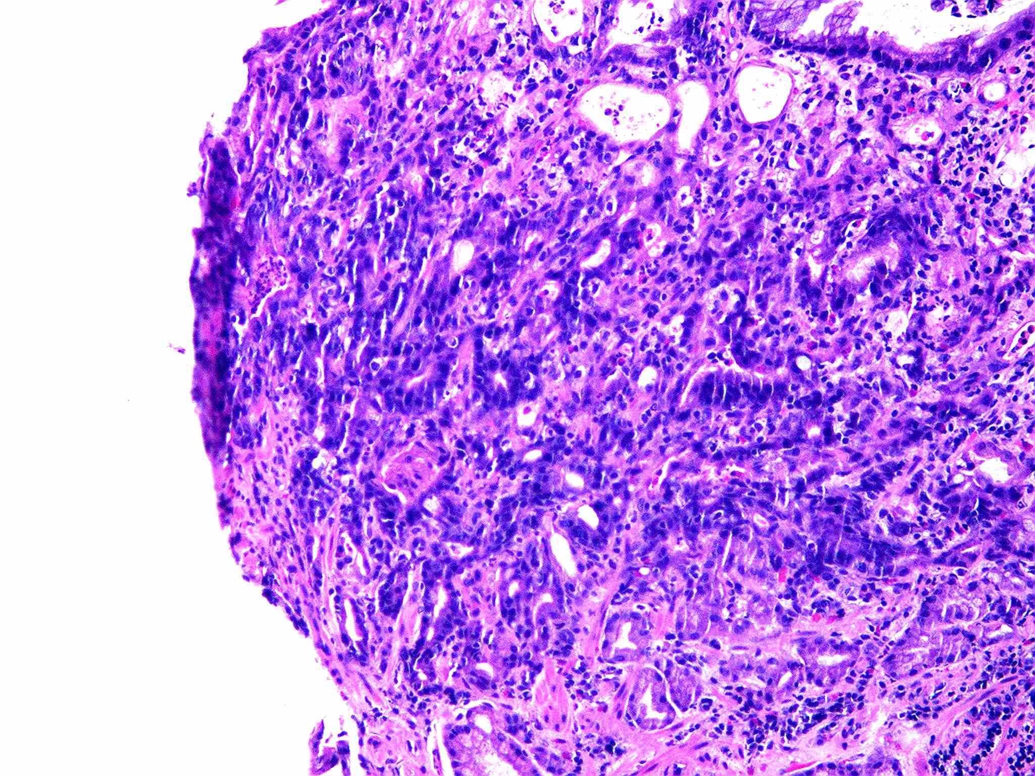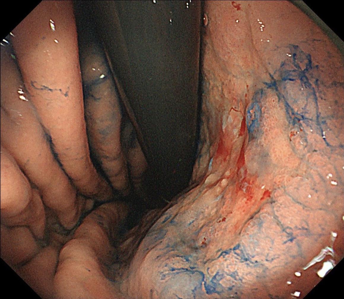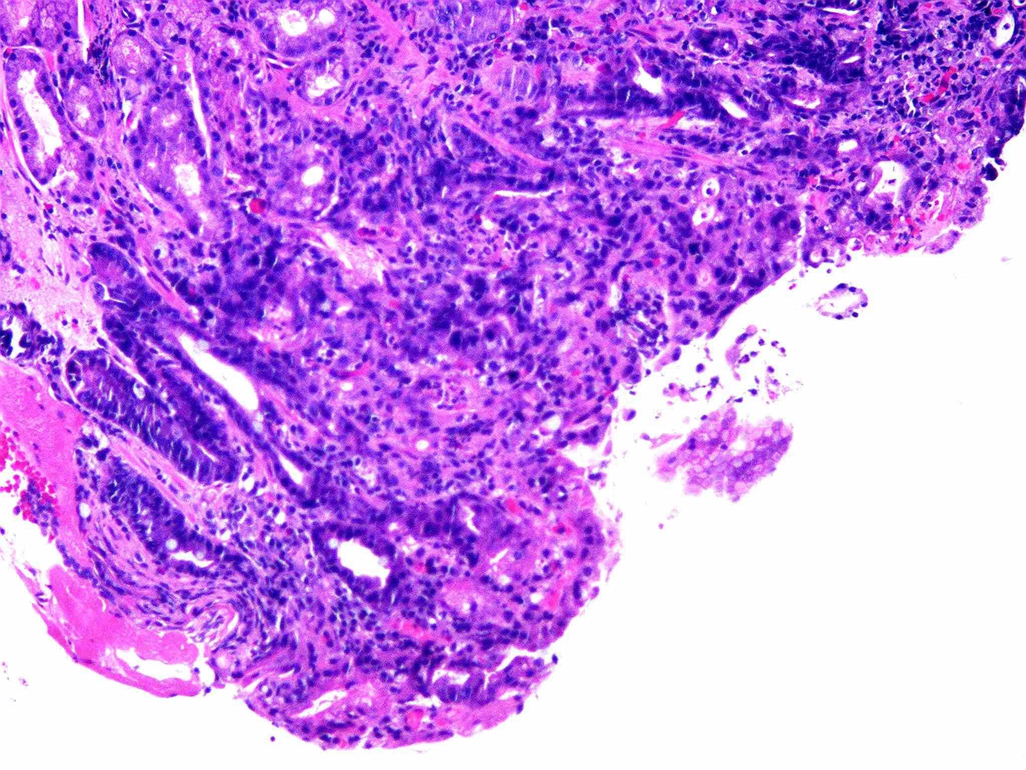 女,37岁,胃体中低分化腺Ca.比较大了,3~4cm左右,胃壁略有僵硬感,病理提示混合Ca,含印戒成分,建议外科手术~