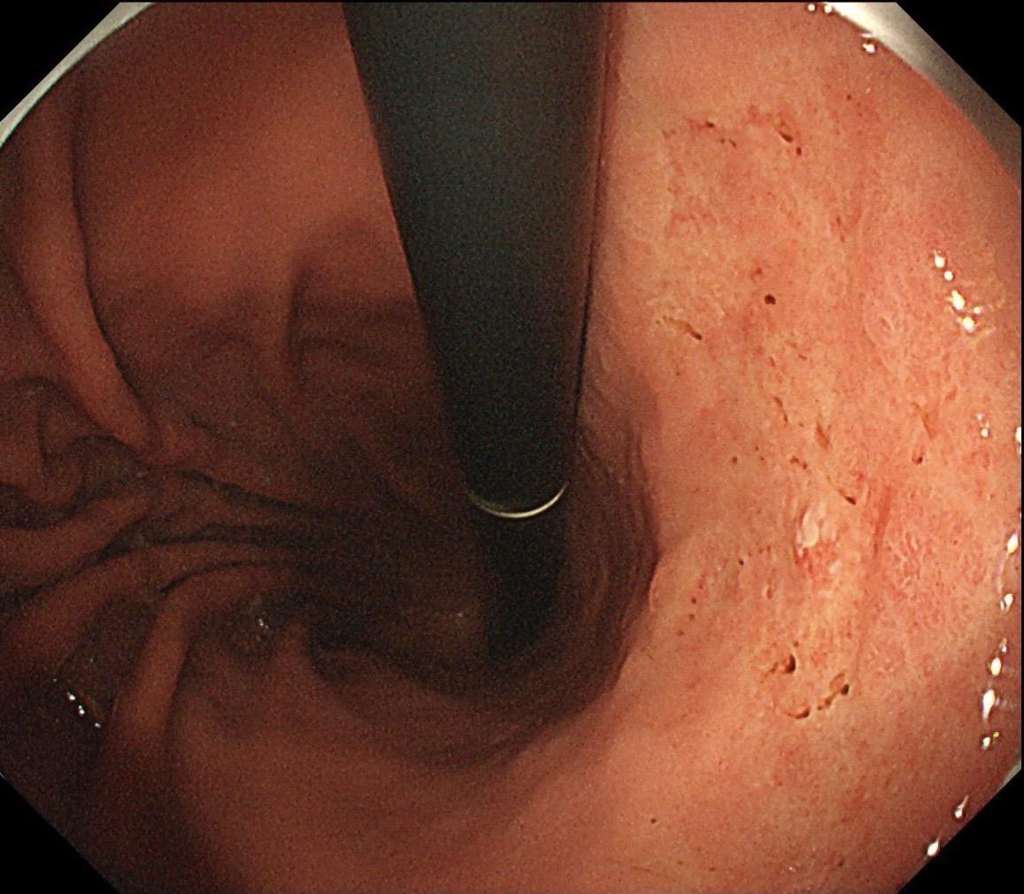 女,37岁,胃体中低分化腺Ca.比较大了,3~4cm左右,胃壁略有僵硬...