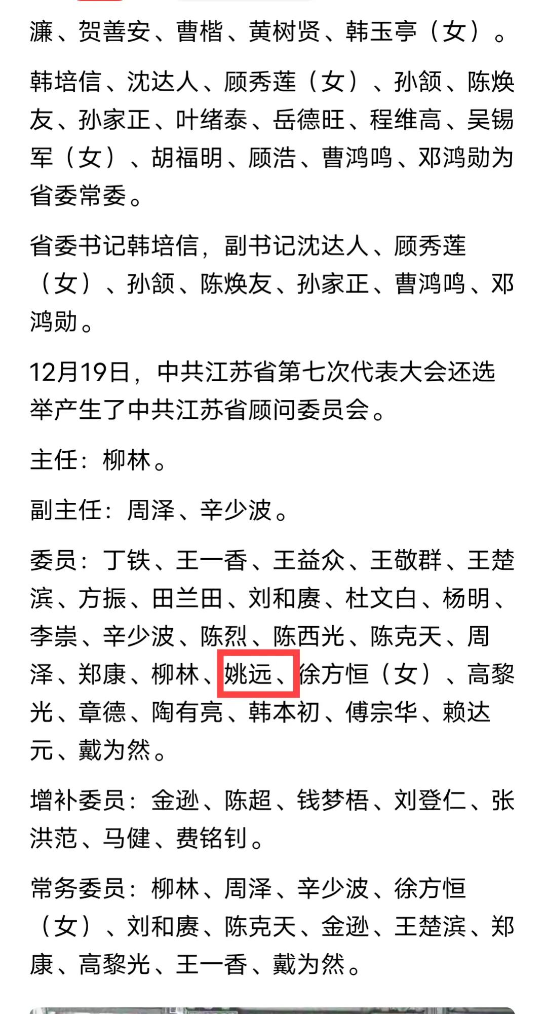 南博前院长徐湖平又爆出了“新瓜”, 有网友爆料,南博前院长徐湖平之所以能从工人一步步走上院长的位置,并且被职工长期举报而“屹立不倒”,原因是有个岳父做靠山,据说,徐湖平的妻子叫姚晓玲,姚晓玲的父亲是前江苏省Z府秘书长姚远。 自从南博风波事件发酵以来,这些天网友们都将徐湖平的生平经历扒的差不多了,就连其父亲徐志明的过往也都被大众所得知,原来徐湖平还是“红色基因”跟脚出身。 至于徐湖平个人,当年他就读到高中毕业就没没有继续学业而是选择了入伍报效祖国,入伍后在空军某部队服役了6年后复员,而在此期间徐湖平曾经因为所在的部队有了立功行为受到了毛主席的接见,徐湖平可是见过太阳的人。 复员后的徐湖平回到南京一开始进入了当地的印刷厂做一名工人,待了四年之后转辗到了南京博物院上班,在这里就一直干到了院长职位退休。 而这位网传是省府秘书的姚远,经过多方资料查证,确实在相关公开信息中查询到了他的存在,他在1985年已经退居二线成为会员代表大会的会长。 至于他的女儿是不是姚晓玲,是不是徐湖平妻子,他是不是徐湖平的岳父,目前还未查到具体佐证。 果然广大网友们除了找不到对象,啥线索都能够找到,太令人佩服了。