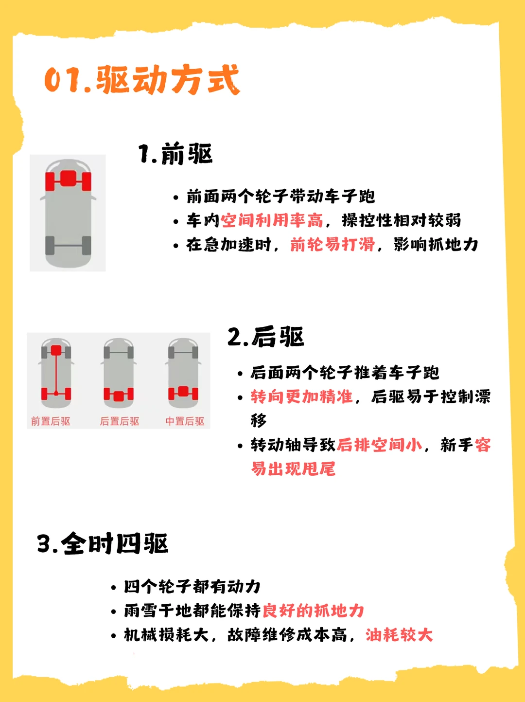 1️⃣ 前驱:前轮拉车跑,空间大但易打滑