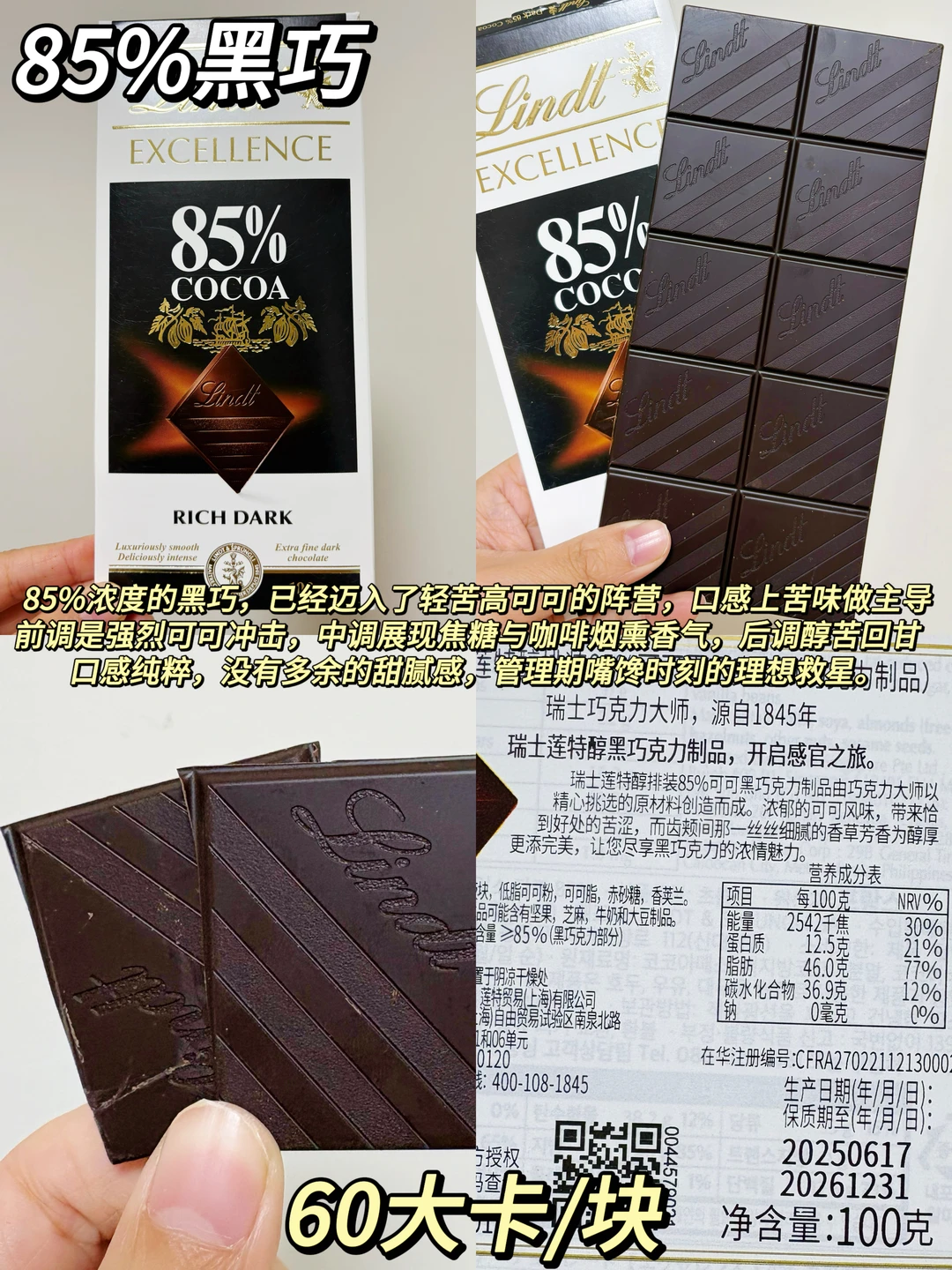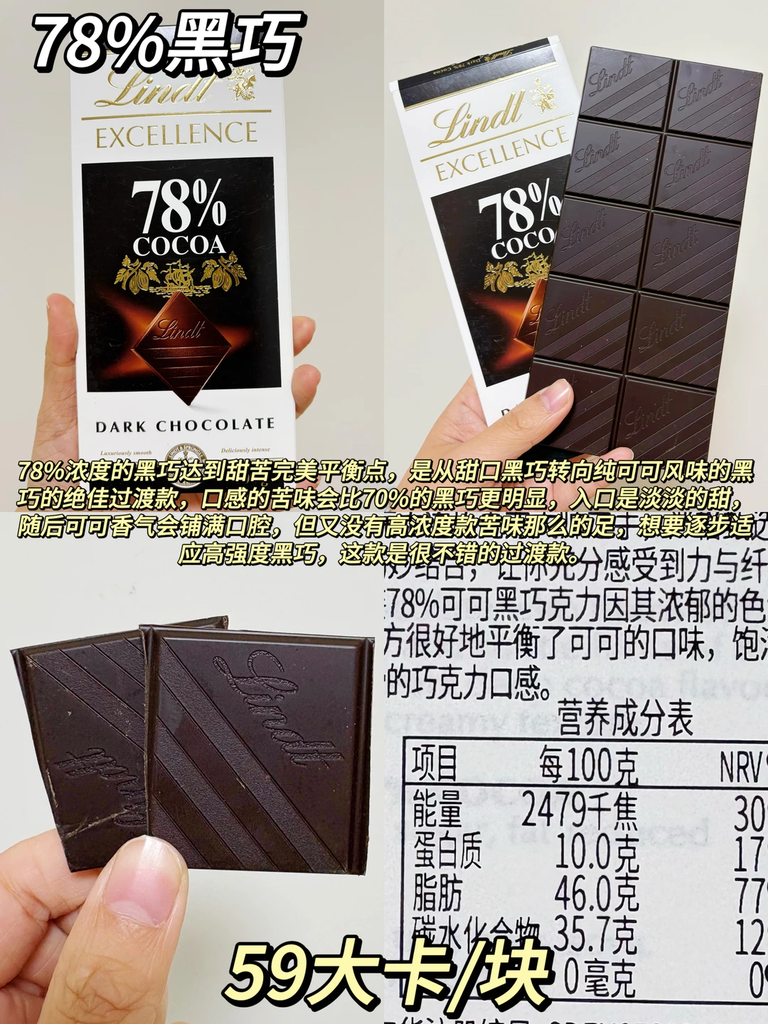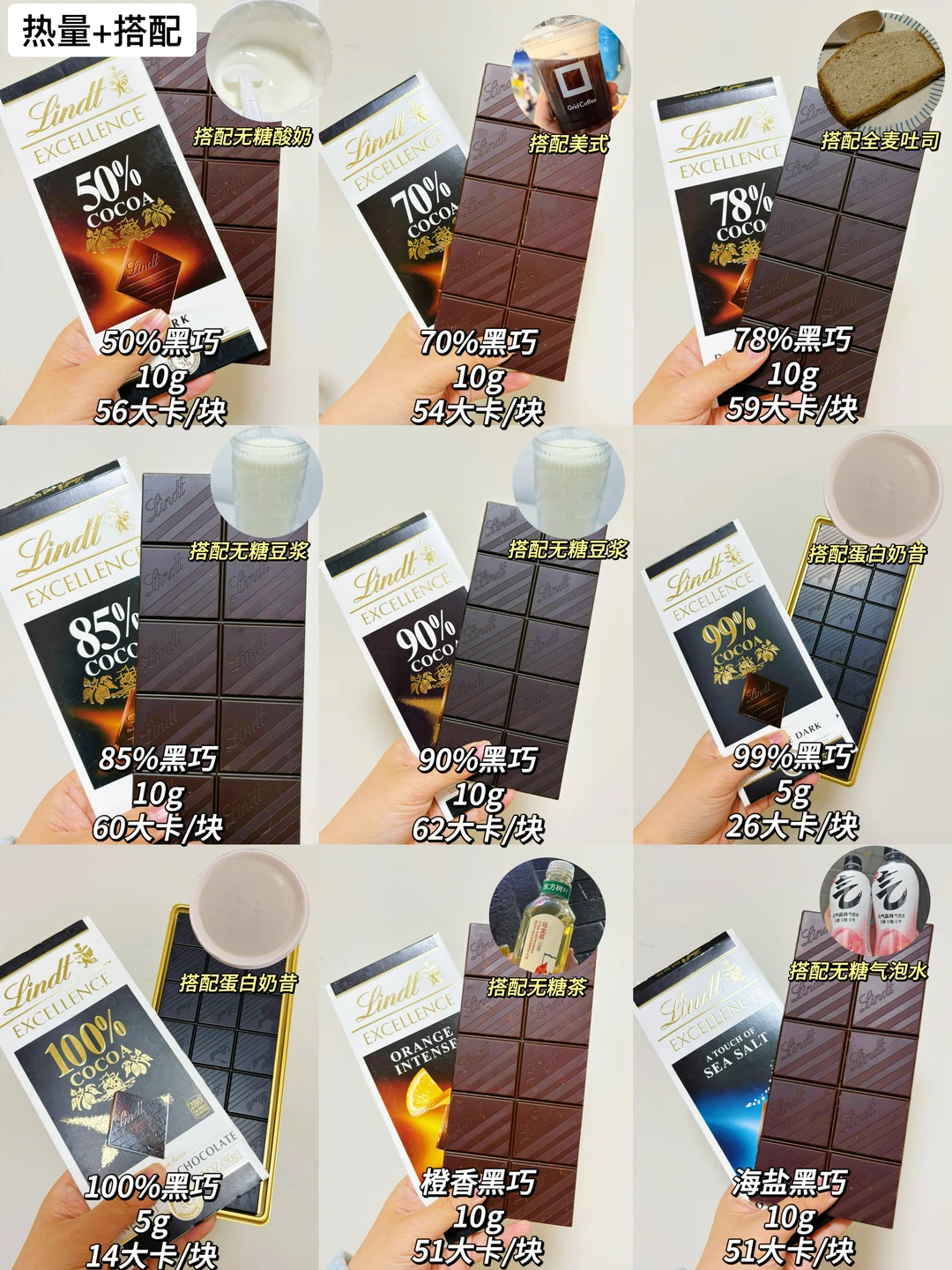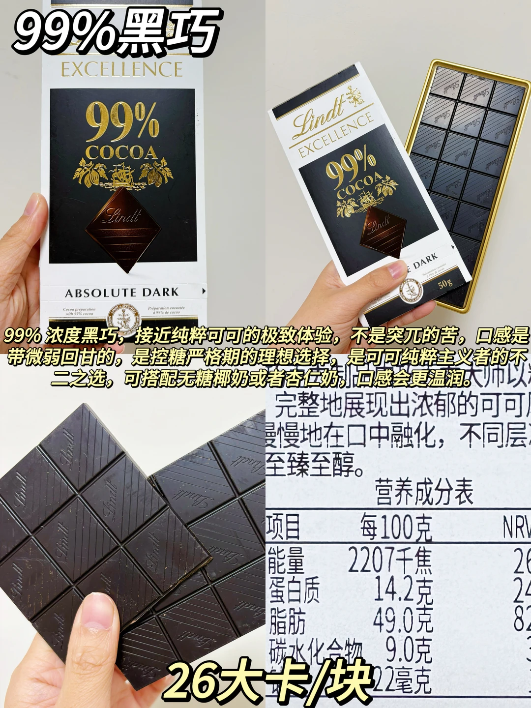 是谁还不知道黑巧是很适合管理期来吃的!既能解馋还能增强饱腹感!但是不知道怎么选?哪款能适配我们管理期需求?今天来测评一下,瑞士莲特醇全系列的黑巧(附热量)看看哪款更适合控卡的姐妹!