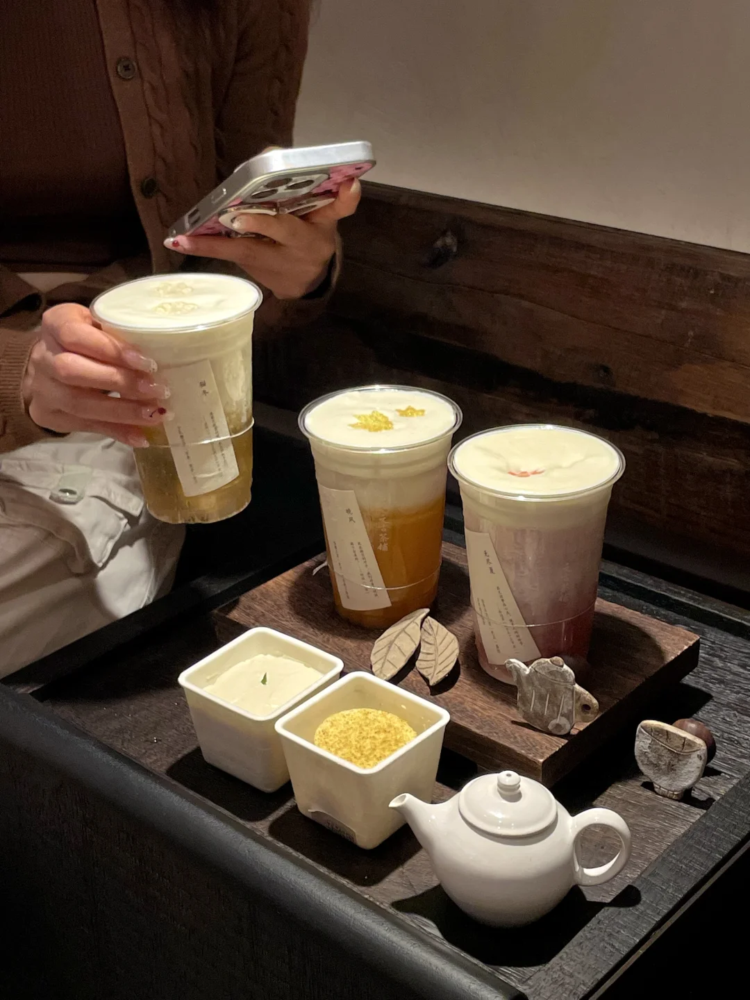 禅意风和氛围感🈵️🈵️的中式茶铺 一茶一糕的搭配入口很舒服~ 茶饮上除了奶盖之外还有很萌的小猫爪🐱和🌸 刚开业song的手作胸针jujuju好看!! 就在深圳罗湖万象城!!快去!!!