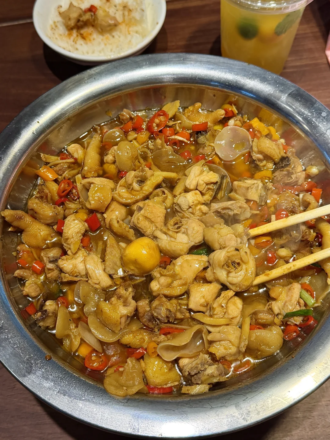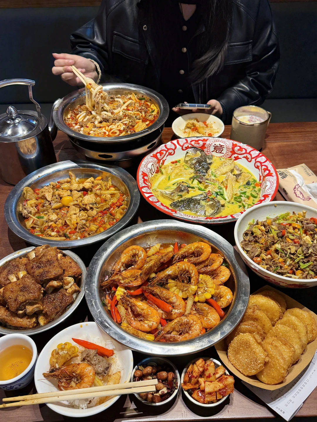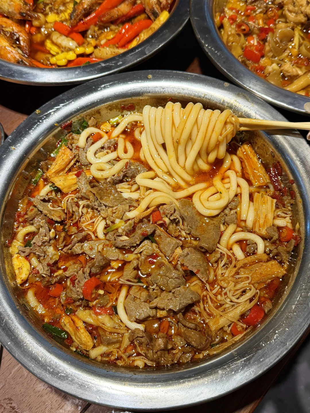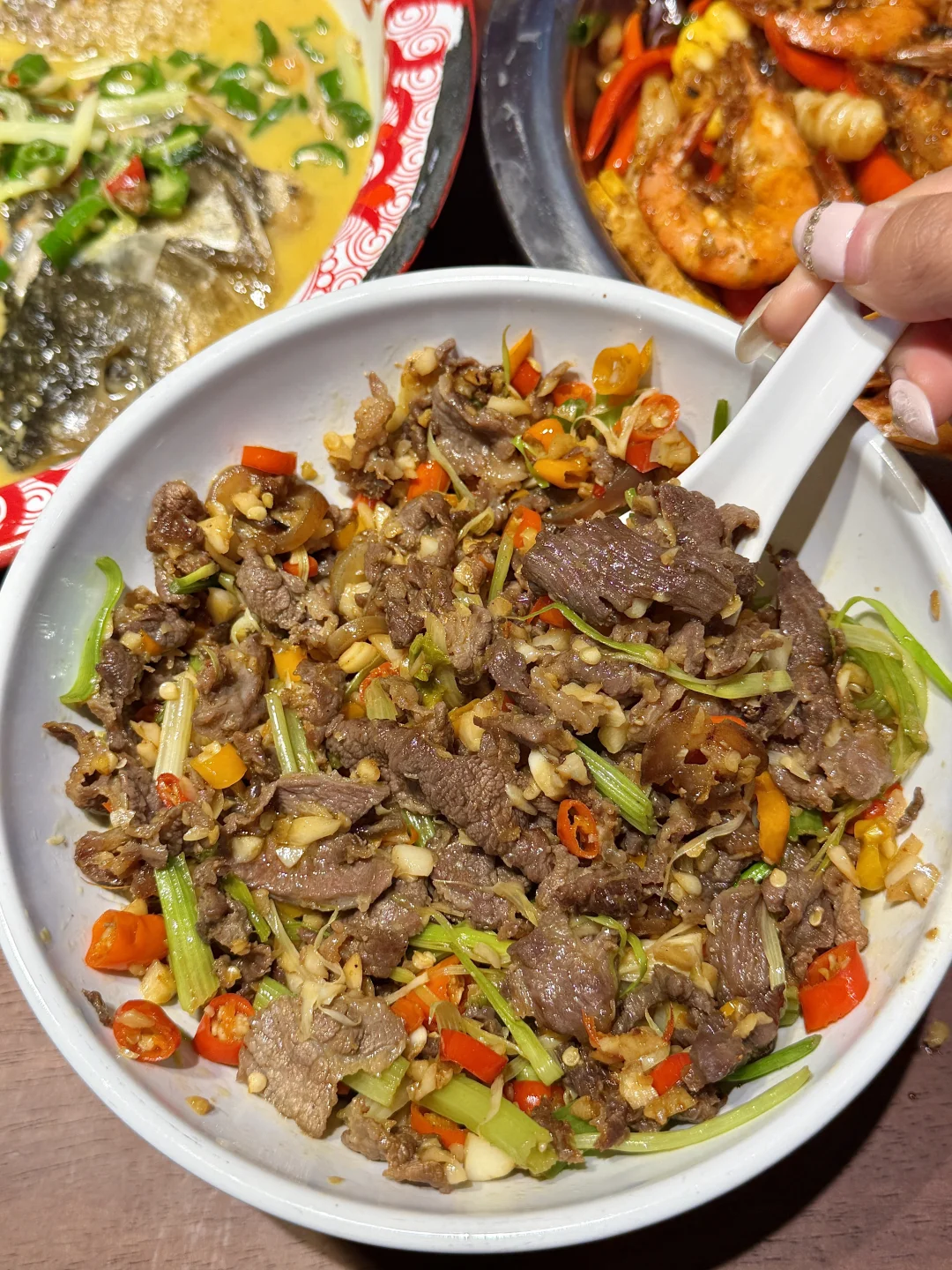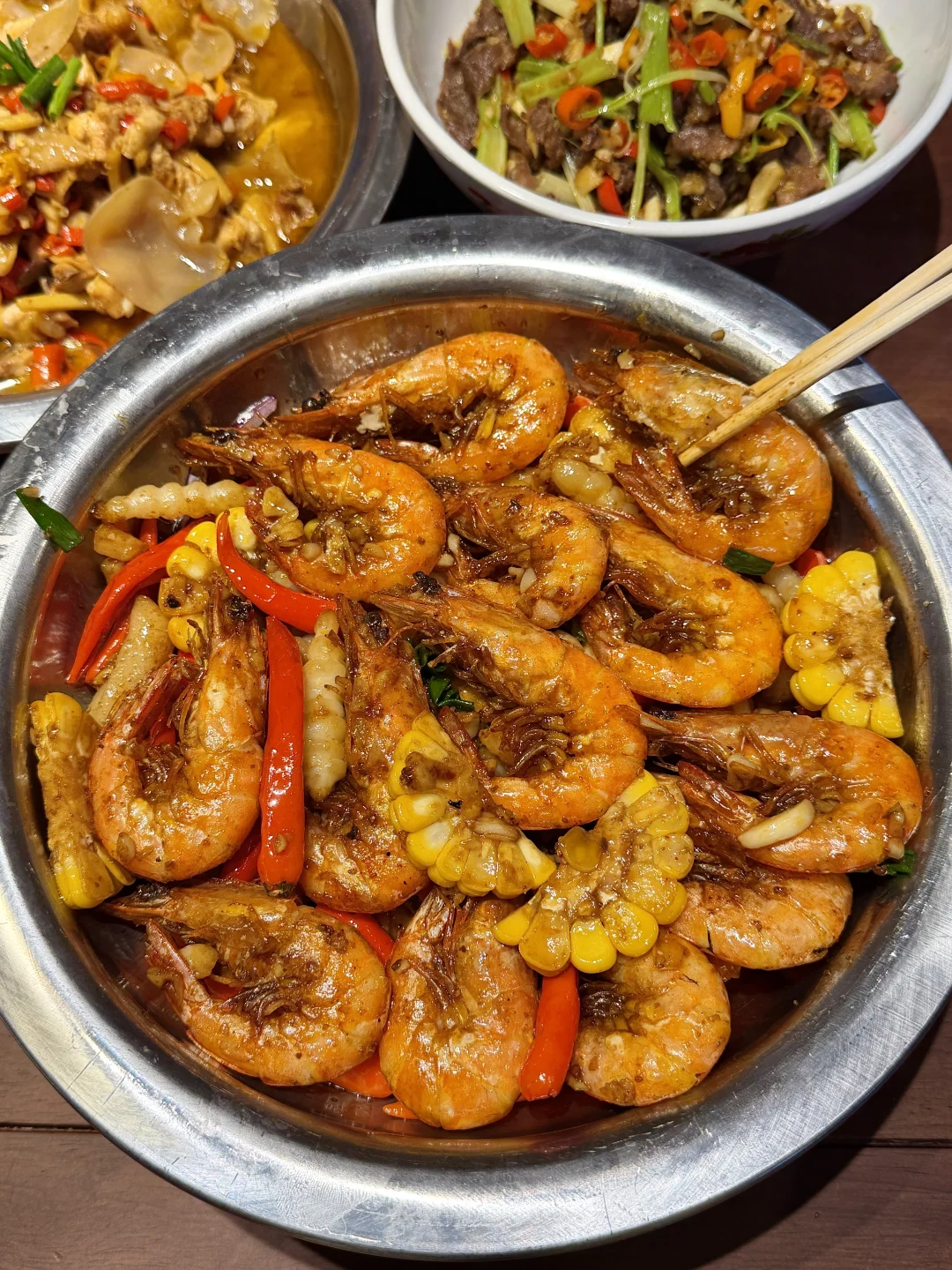 想了好久的蛋煎糍粑,终于吃到了!超爱表皮的芝麻裹满超浓郁的鸡蛋糍粑😭真的香惨了 还有他家主打的湘菜也不错!超大盆的衡阳啤酒鸡抢都抢不过我朋友,我们一口一筷子吃完辣爽了🥵还有油爆虾、油辣子猪蹄、水煮雪花牛肉好多正宗衡阳菜,人均吃下来才三四十,真心便宜好吃🥹唯一缺点就是太下饭了(店名:岳佬三衡阳口味菜