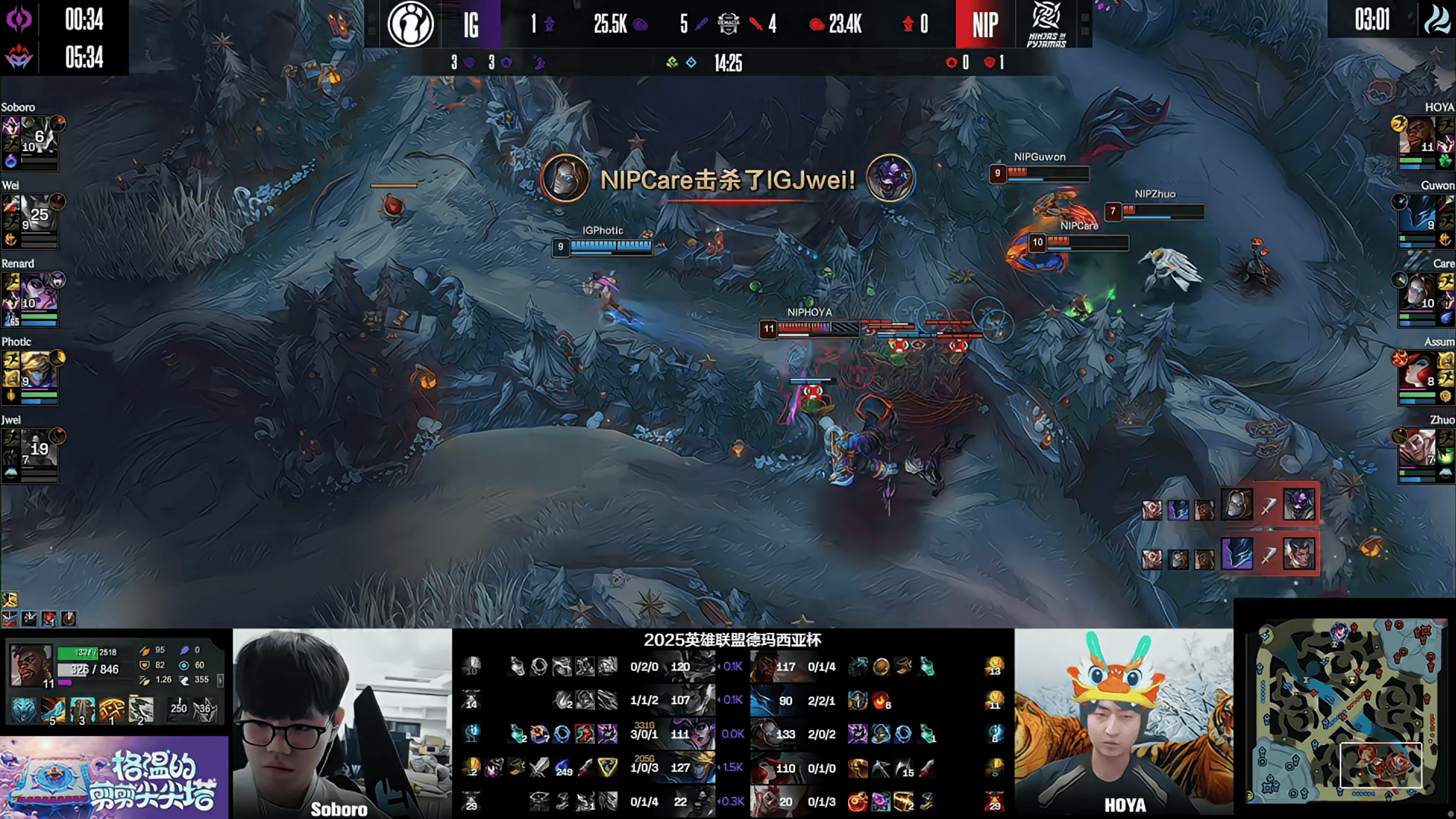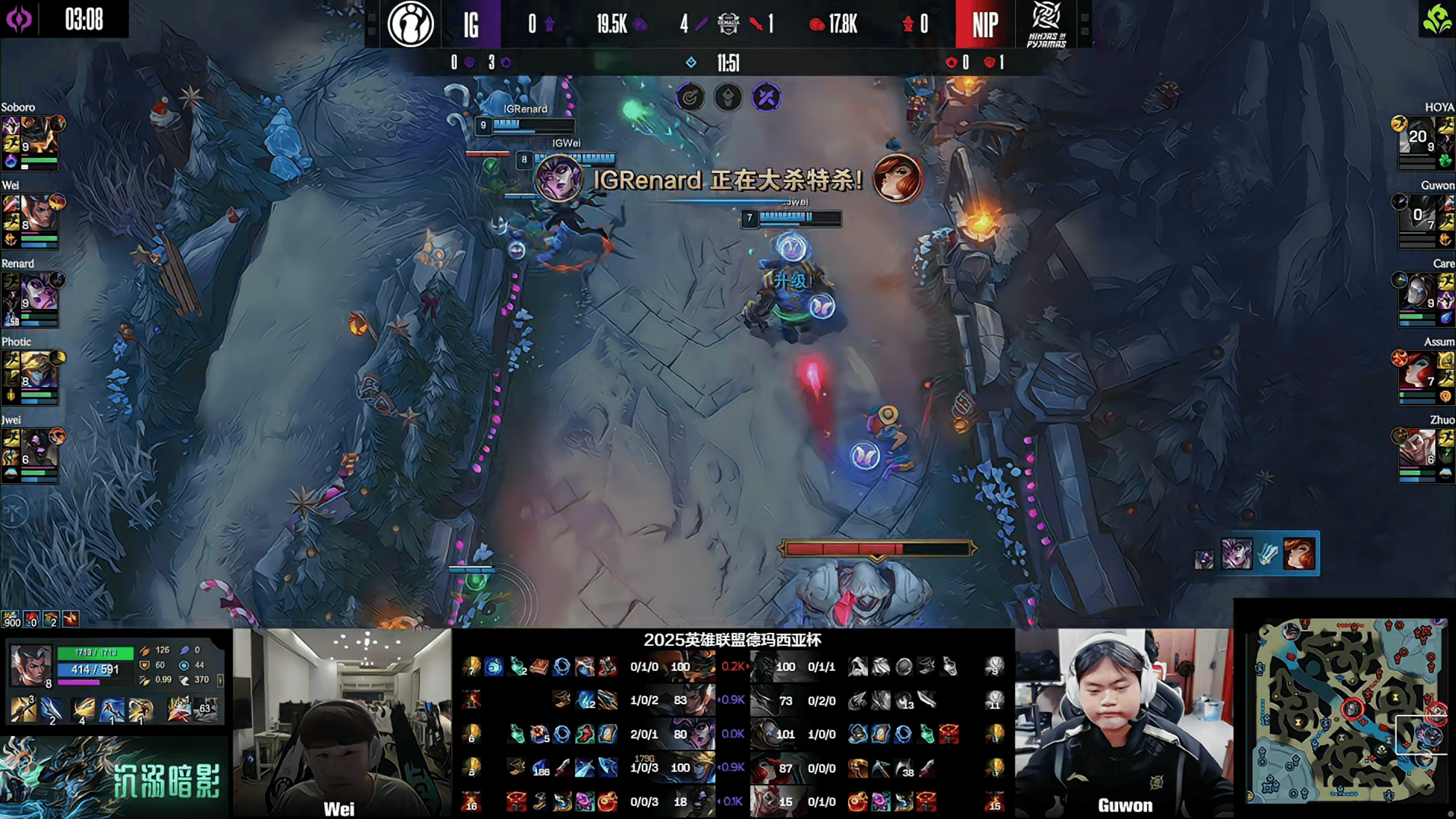 14分钟:IG人少尝试接团,NIP利用人数优势完美拉扯打出0换3扳回劣势