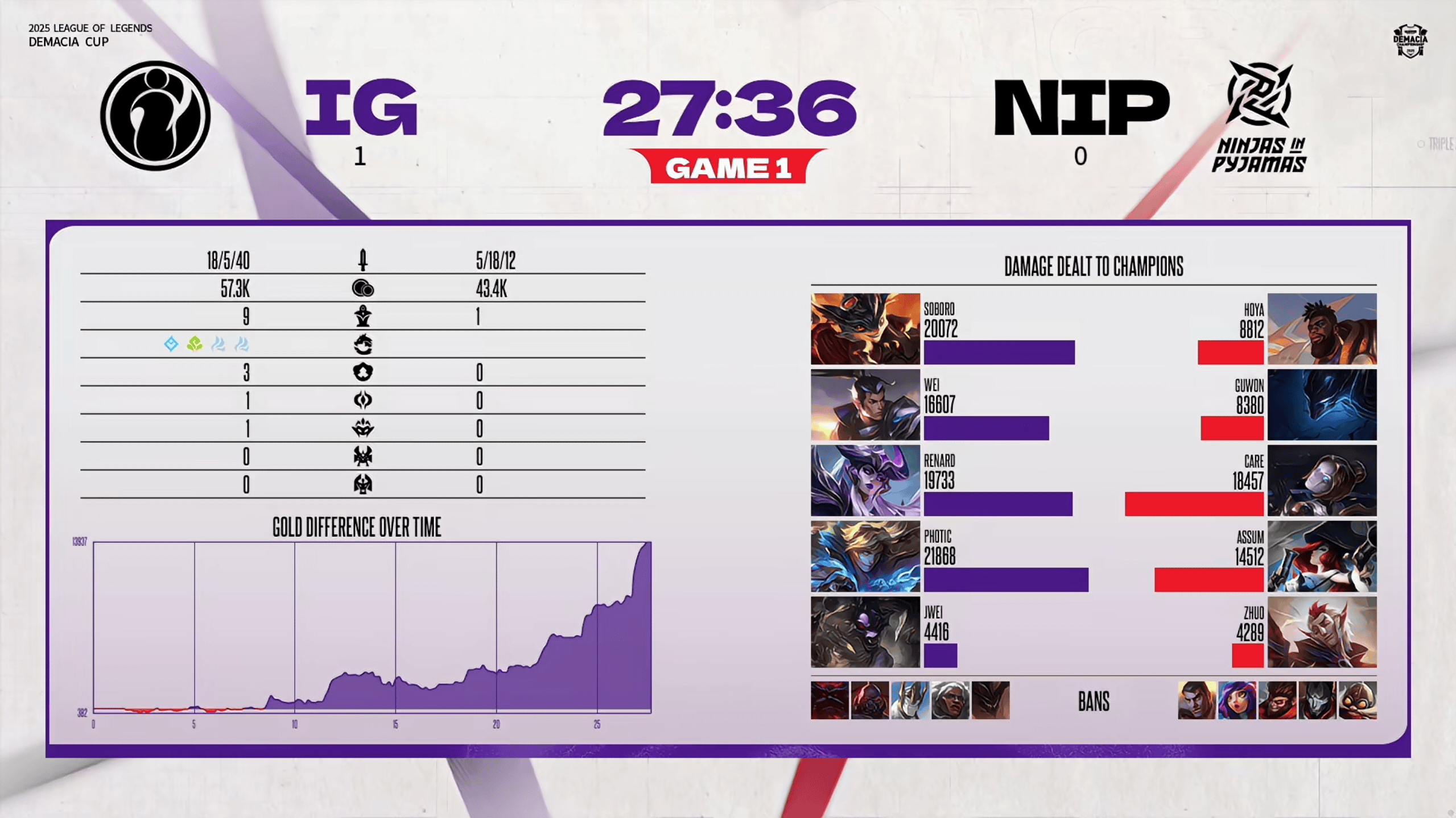 IG 1-0 NIP:小规模团战多次打出节奏,IG轻取首局胜利